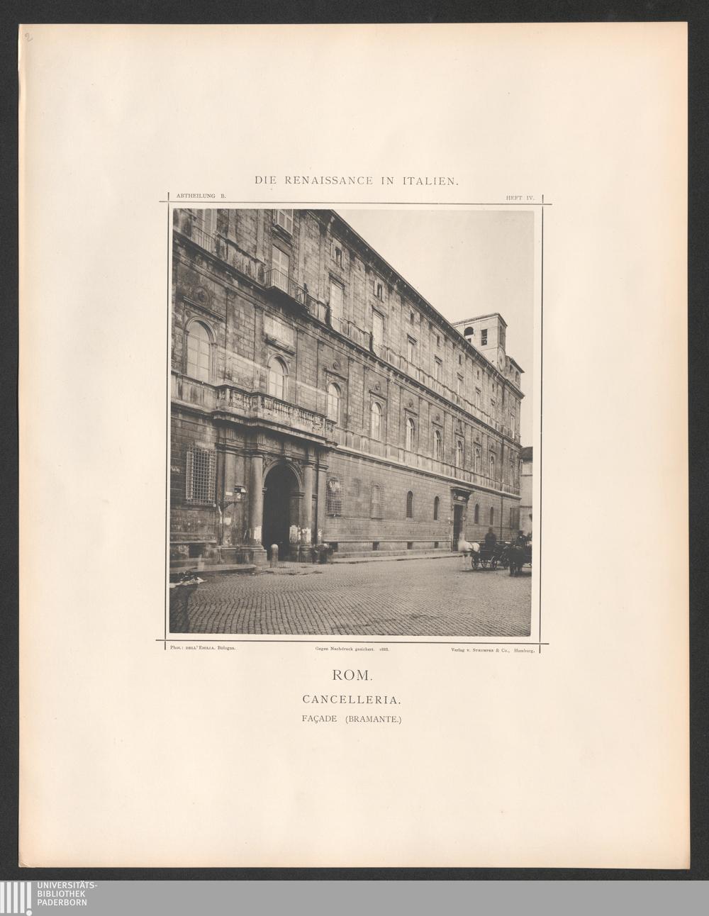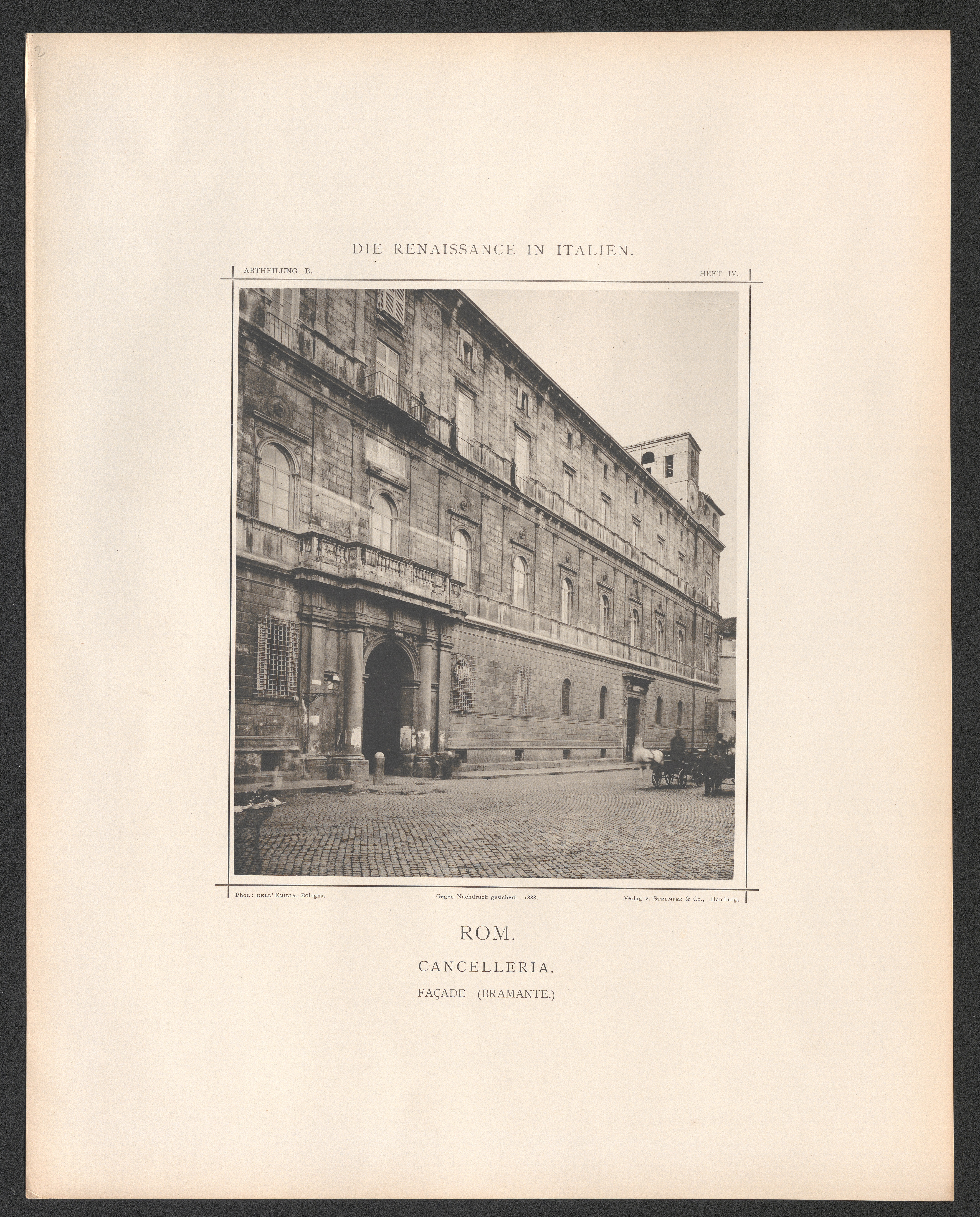 Rom. Cancelleria. - Façade. - Seit 1500 erb. v. Bramante, rechte Thür v. Vignola[...]