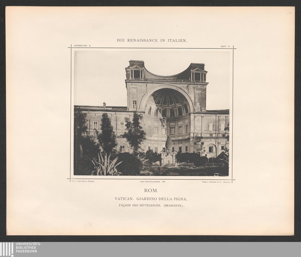Rom. Vatican. Giardino della Pigna. - Façade des Mittelbaues. - Nach 1503 unter Julius[...]
