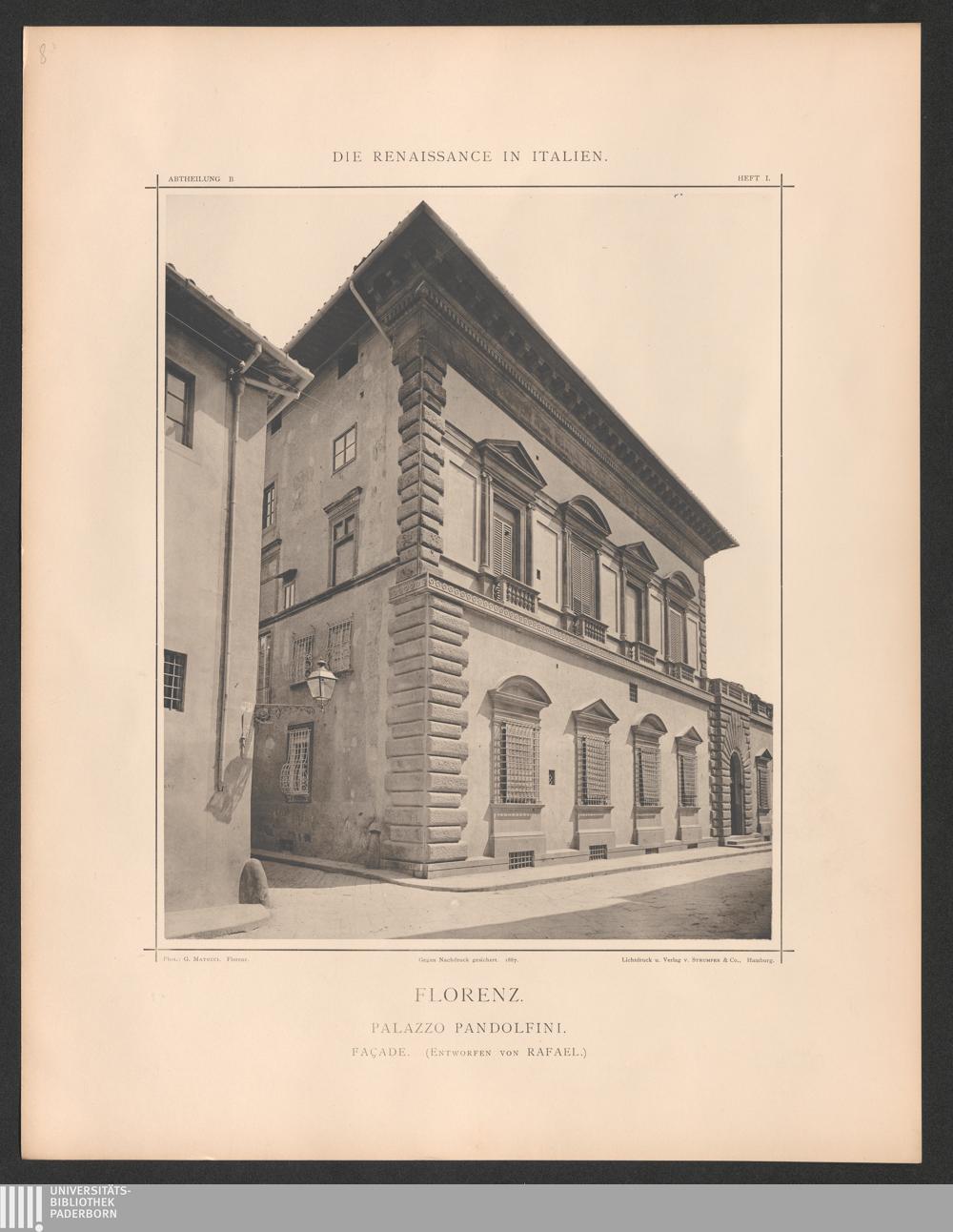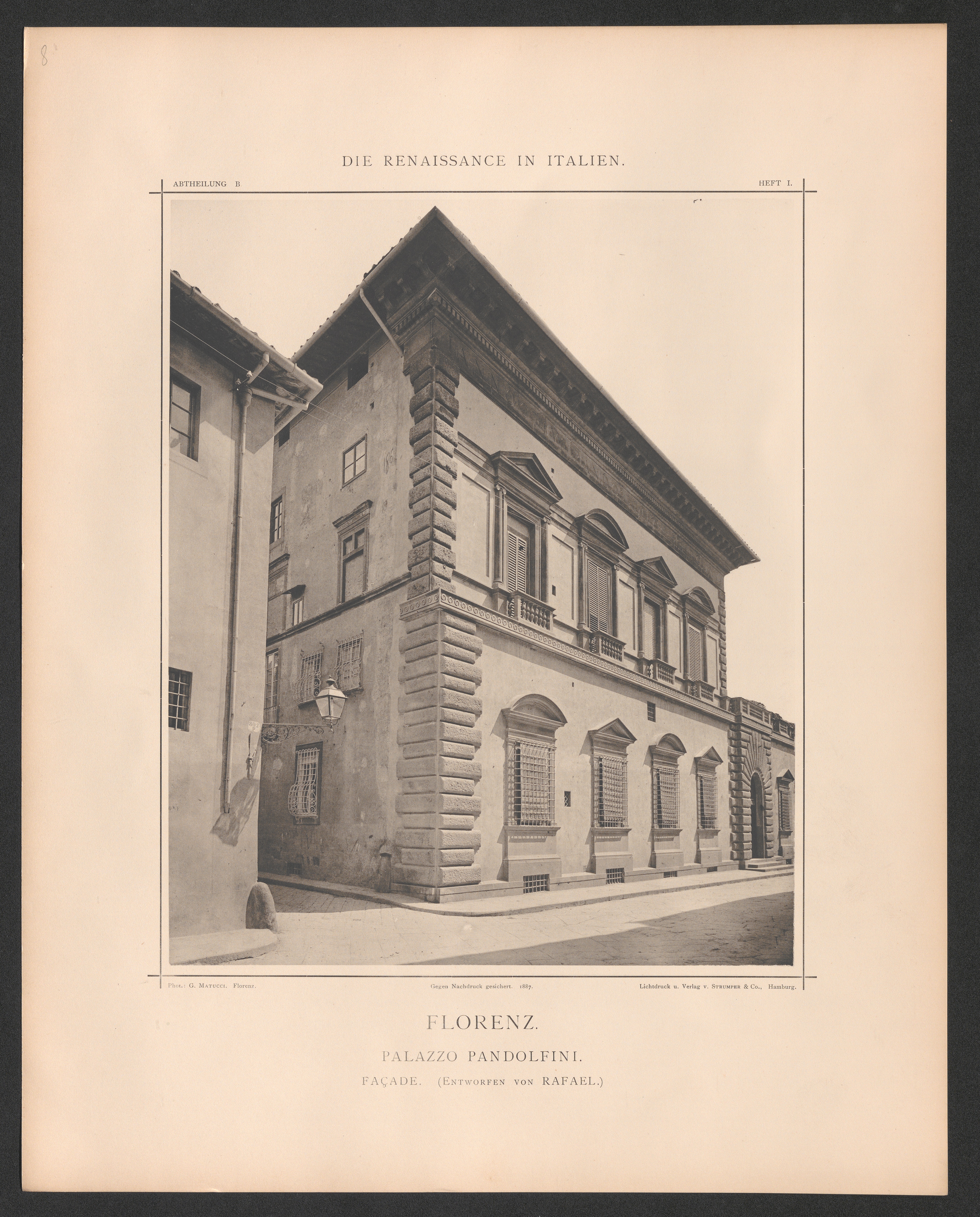 Florenz. Palazzo Pandolfini. - Façade. - Entworfen zwischen 1515-16 von Rafael ausgef.[...]