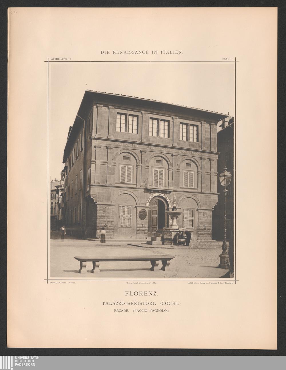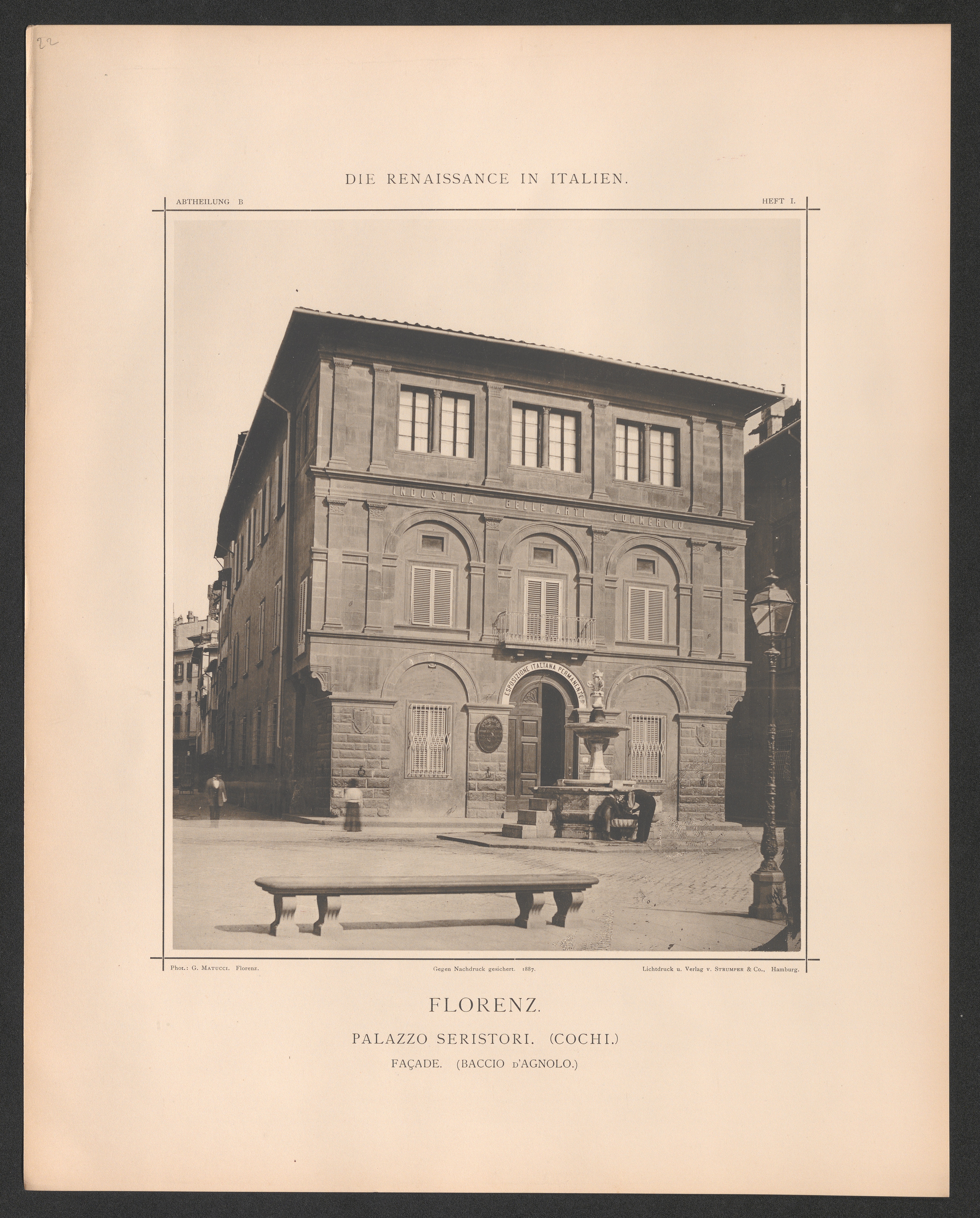Florenz. Palazzo Seristori, ehemals Cocchi. - Façade. - Nach Palazzo Bartolini erbaut[...]