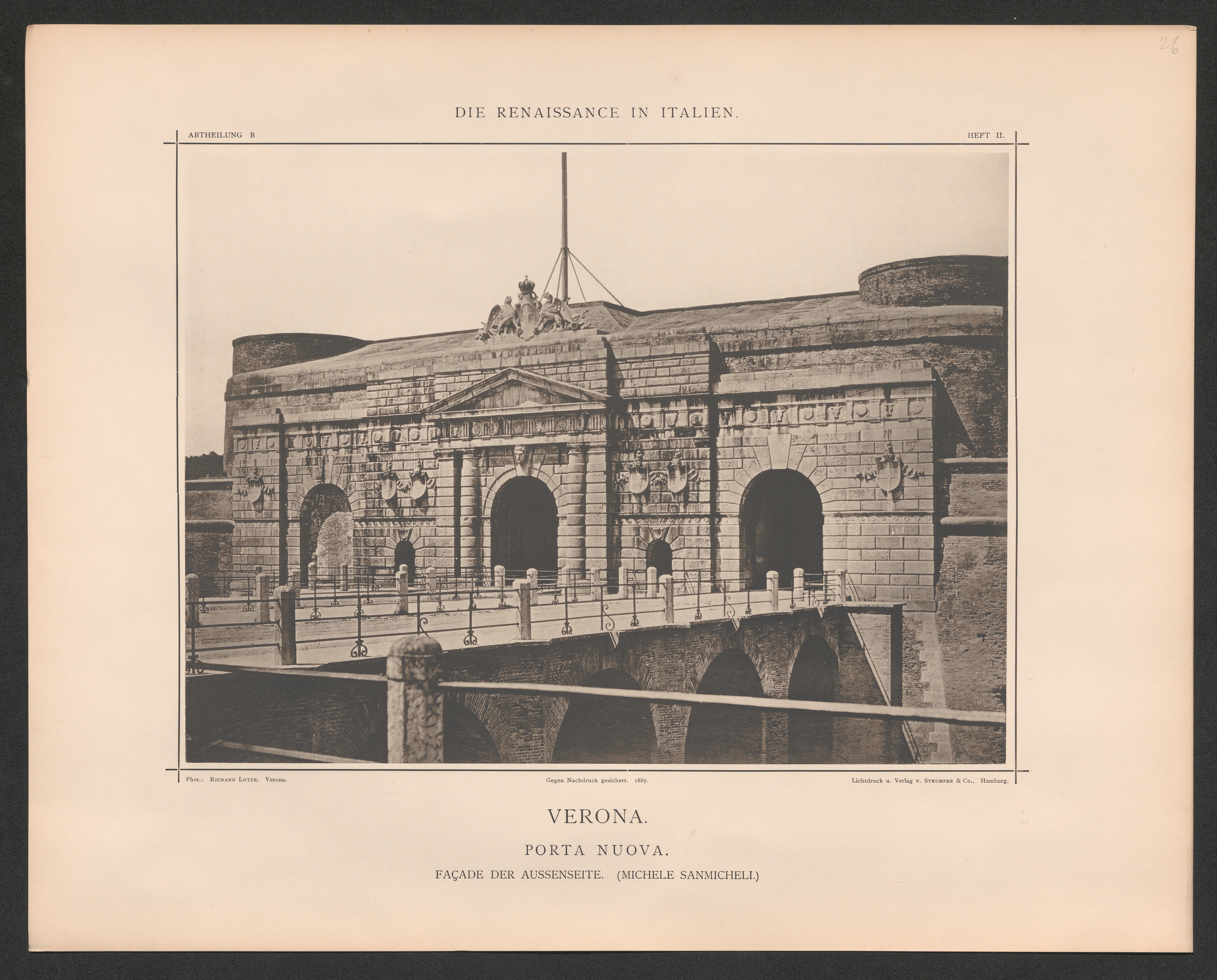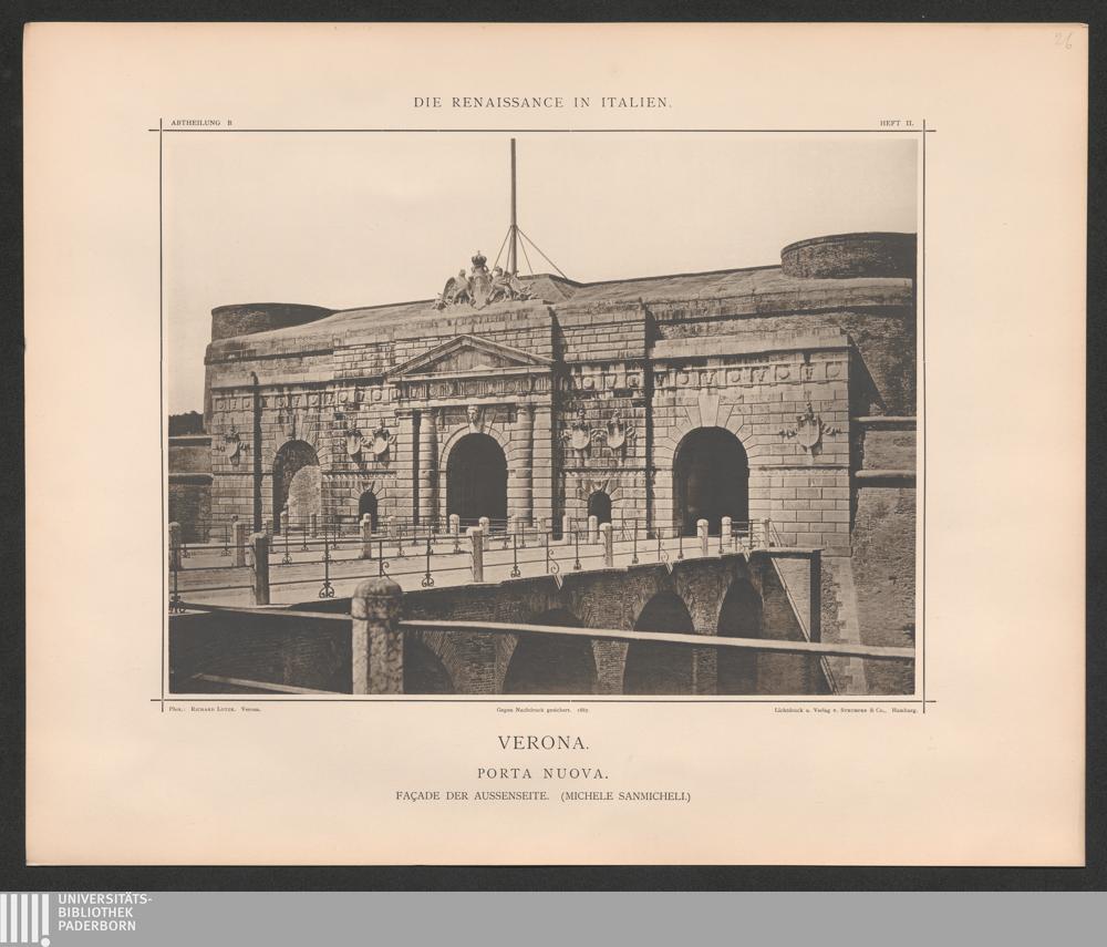 Verona. Porta Nuovo. - Façade der Aussenseite. - Erbaut 1533 von Michele Sanmicheli[...]