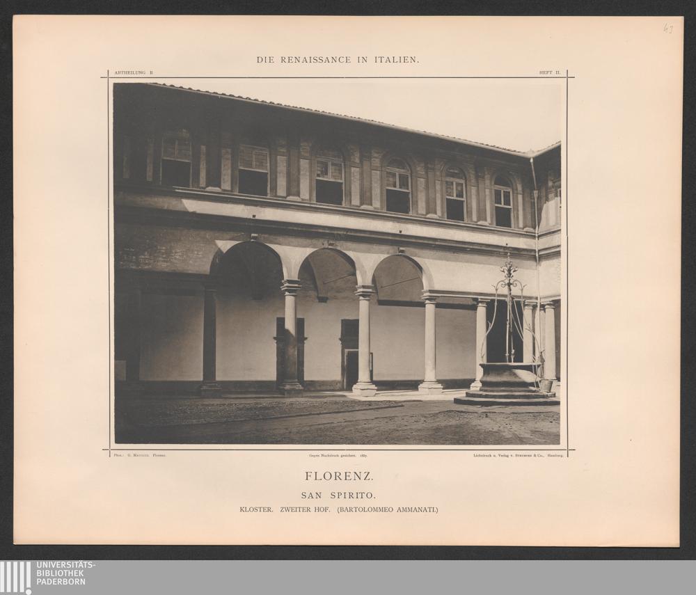 Florenz. San Spirito. Kloster. - Zweiter Hof. - Nach dem Jahre 1560 erb. von Bartolommeo[...]