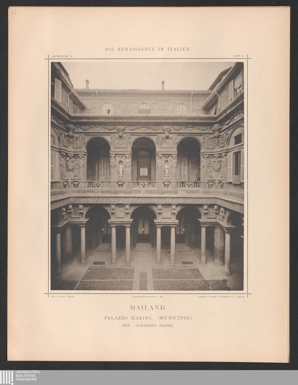 Mailand. Palazzo Marini, jetzt Municipio. - Hof. - Von demselben.