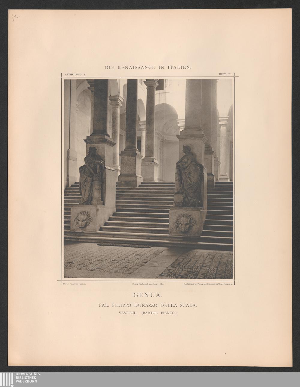 Genua. Palazzo Filippo Durazzo della Scala. - Vestibul. - Von Bartol. Bianco. (†[...]