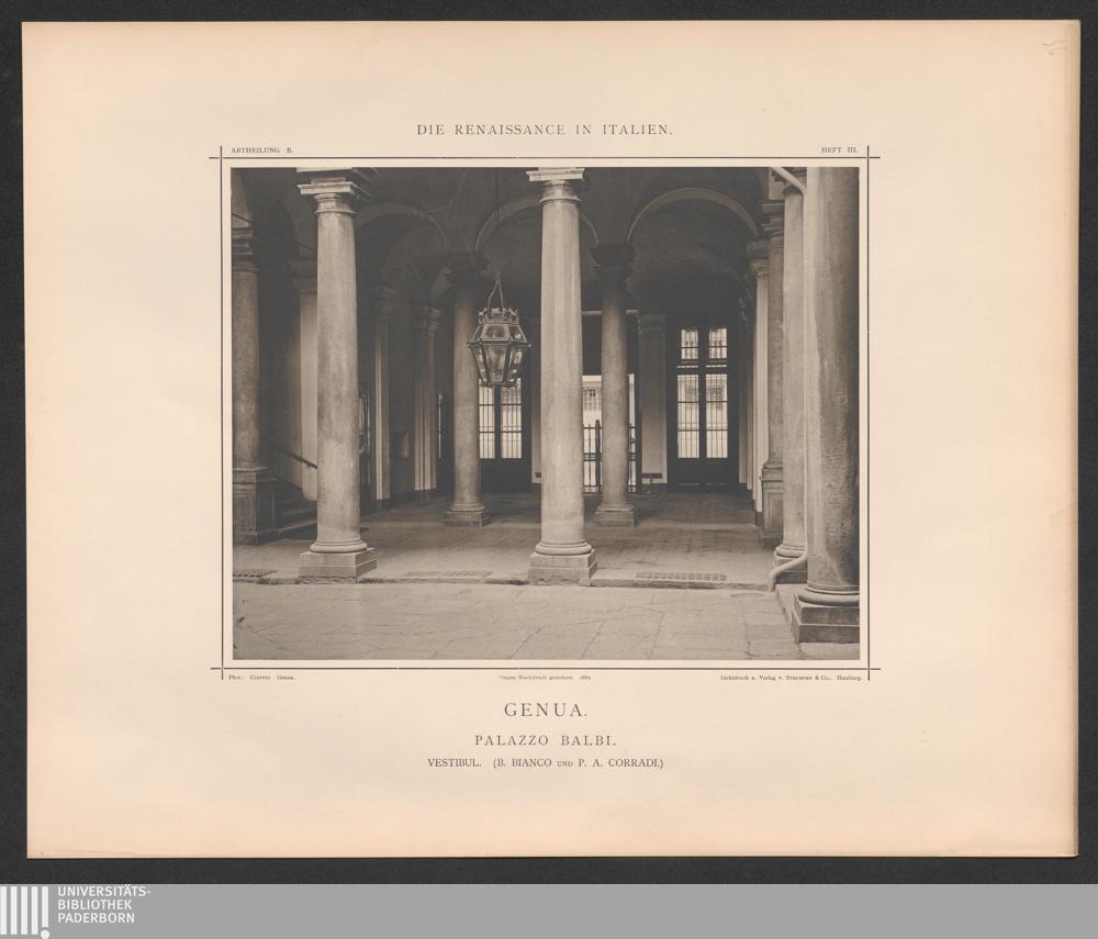 Genua. Palazzo Balbi. - Vestibul vom Hofe gesehen. - 1604 nach dem Entwurf von B.[...]
