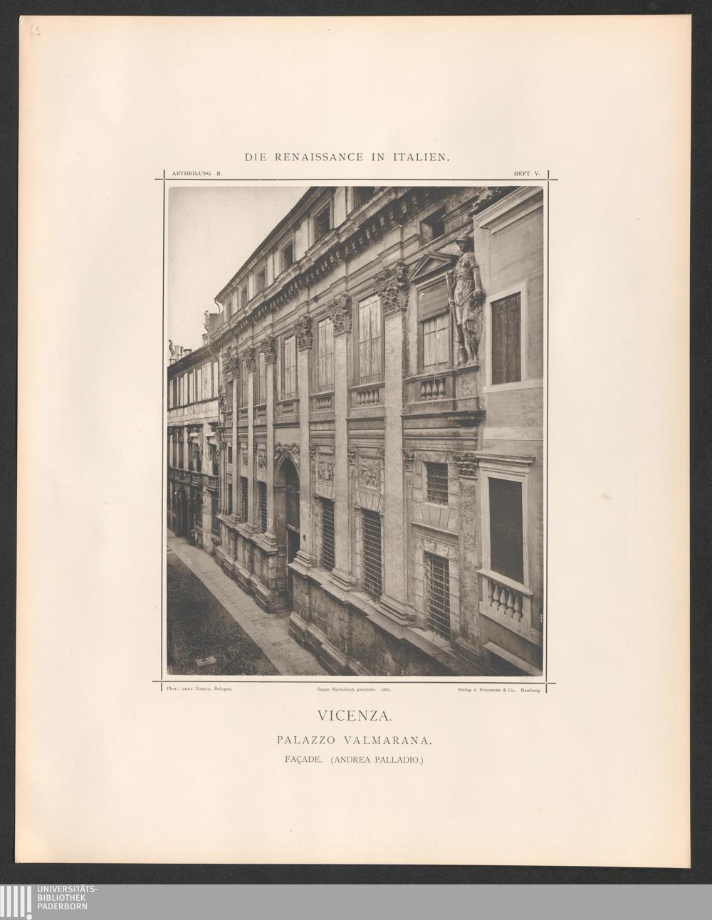 Vicenza. Palazzo Valmarana. - Façade. - 1566 erbaut von demselben.