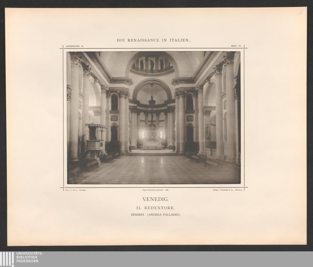 Venedig. Il Redentore. - Inneres. - Von demselben.