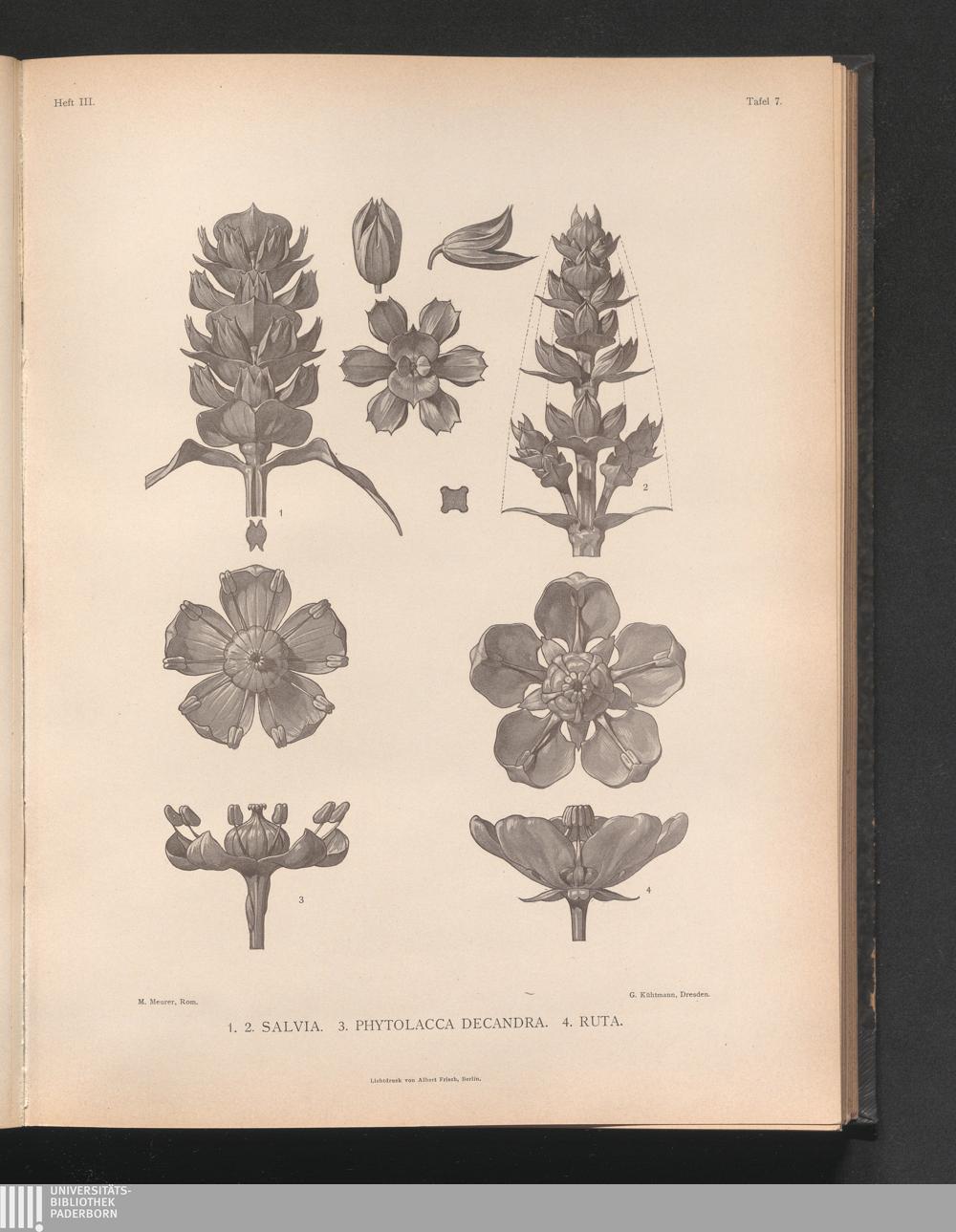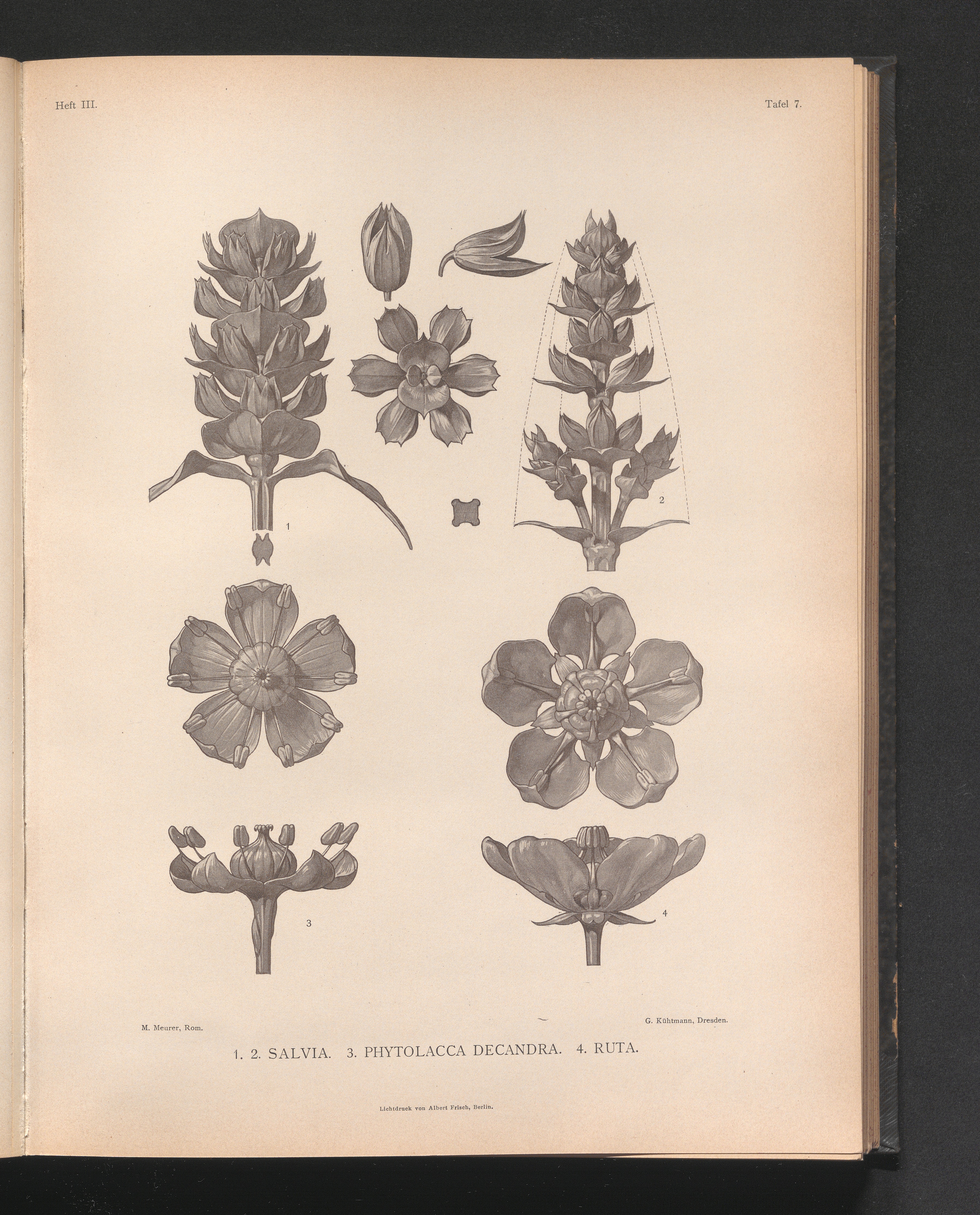 Tafel 7. 1.2. Salvia 3. Phytolacca Decandra. 4. Ruta.