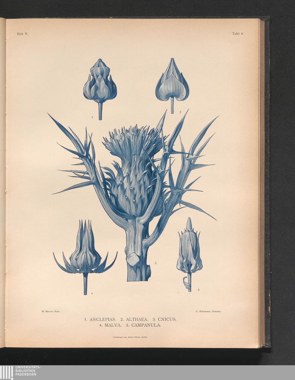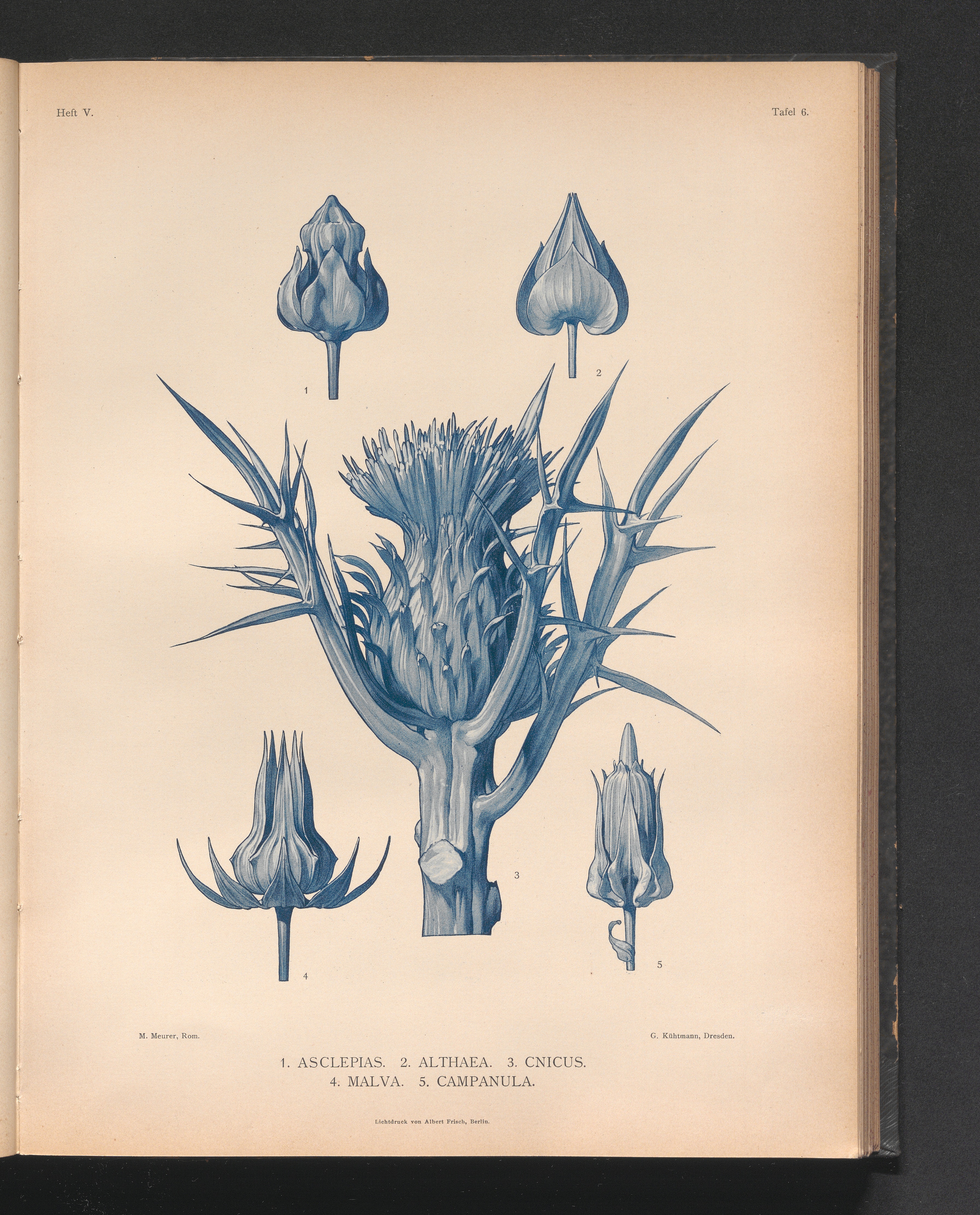 Tafel 6. 1. Asclepias. 2. Althea. 3. Cnicus. 4. Malva. 5. Campanula.