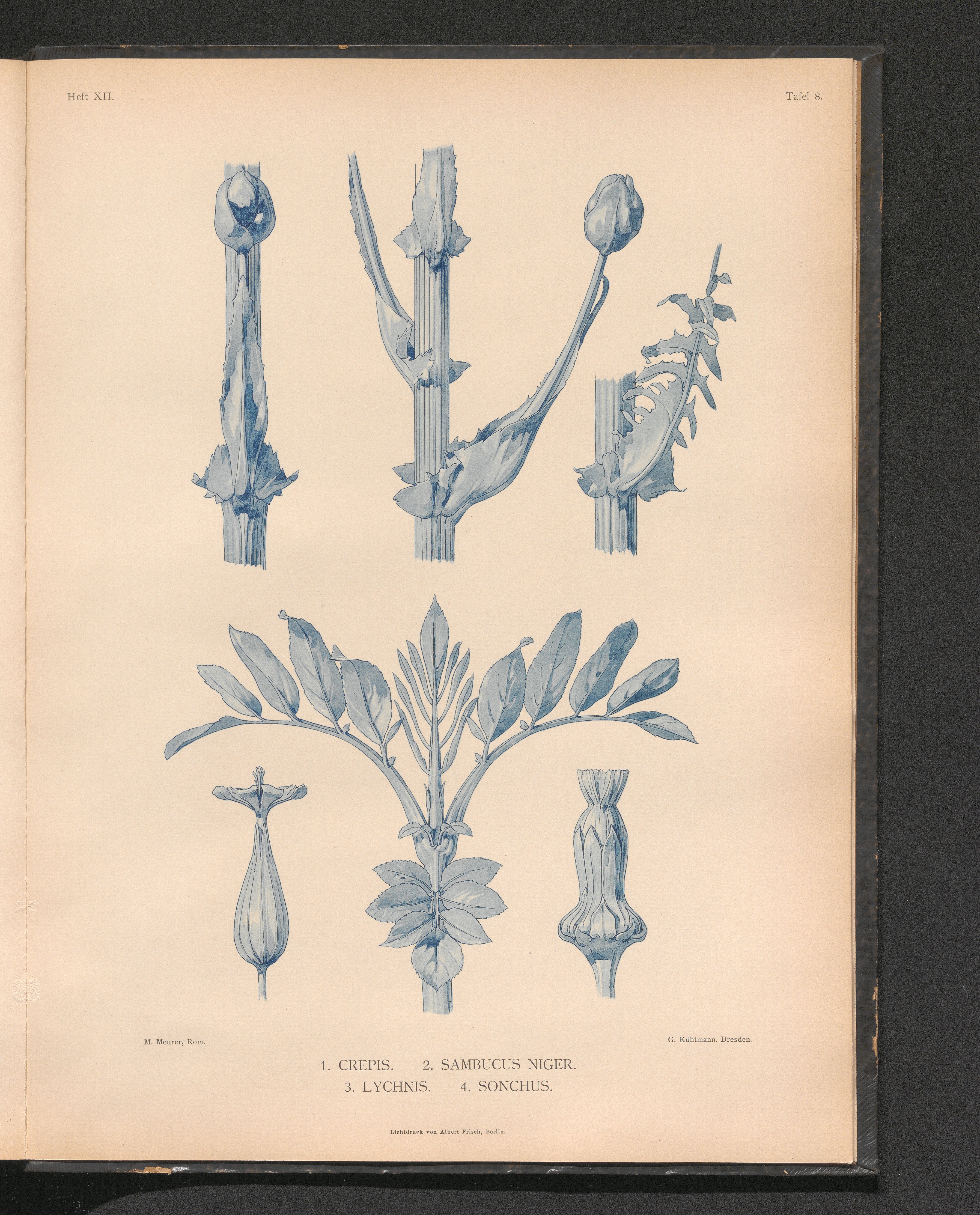 Tafel 8. 1. Crepis. 2. Sambuccus Niger. 3. Lychnis. 4. Sonchus.