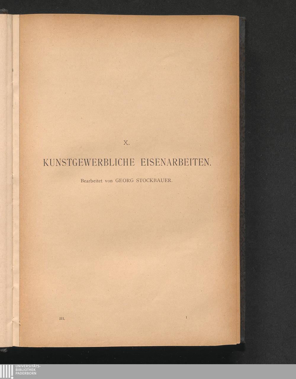 X. Kunstgewerbliche Eisenarbeiten. Bearbeitet von Georg Stockbauer