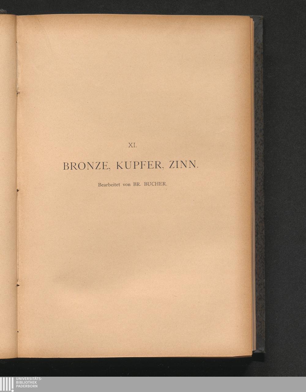 XI. Bronze, Kupfer, Zinn. Bearbeitet von B. Bucher