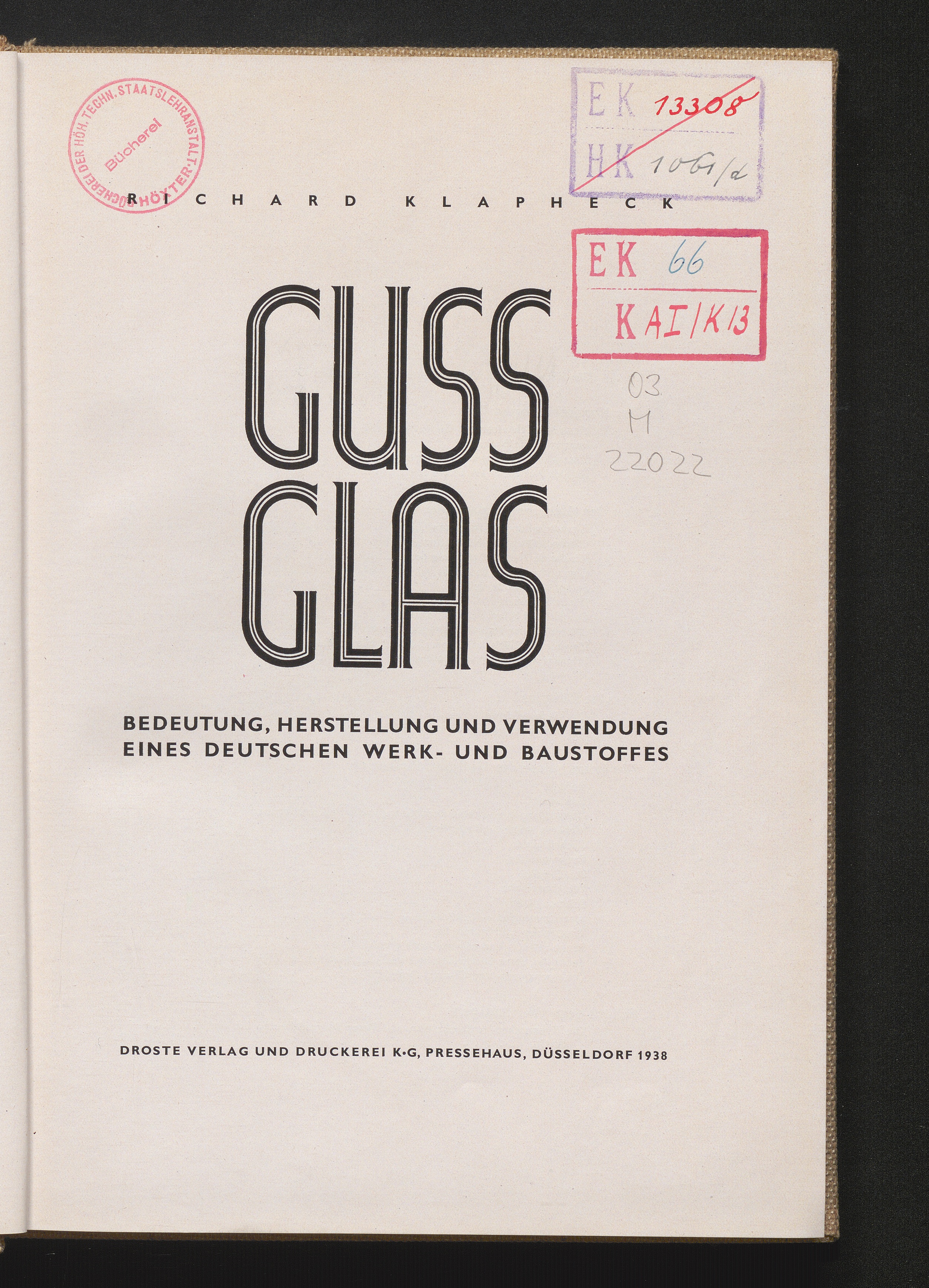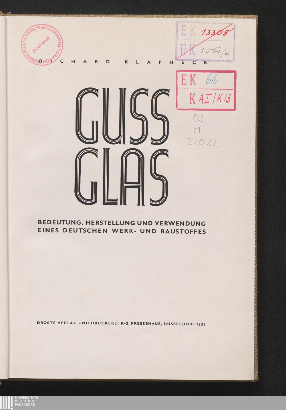 Gußglas : Bedeutung, Herstellung und Verwendung eines deutschen Werk- und Baustoffes / Richard Klapheck