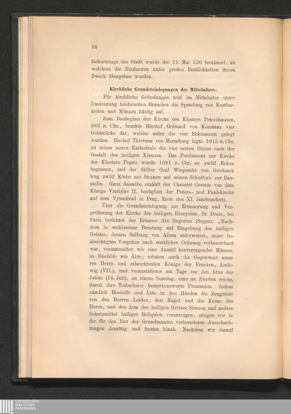 Kirchliche Grundsteinlegungen des Mittelalters.