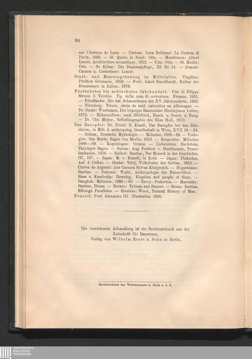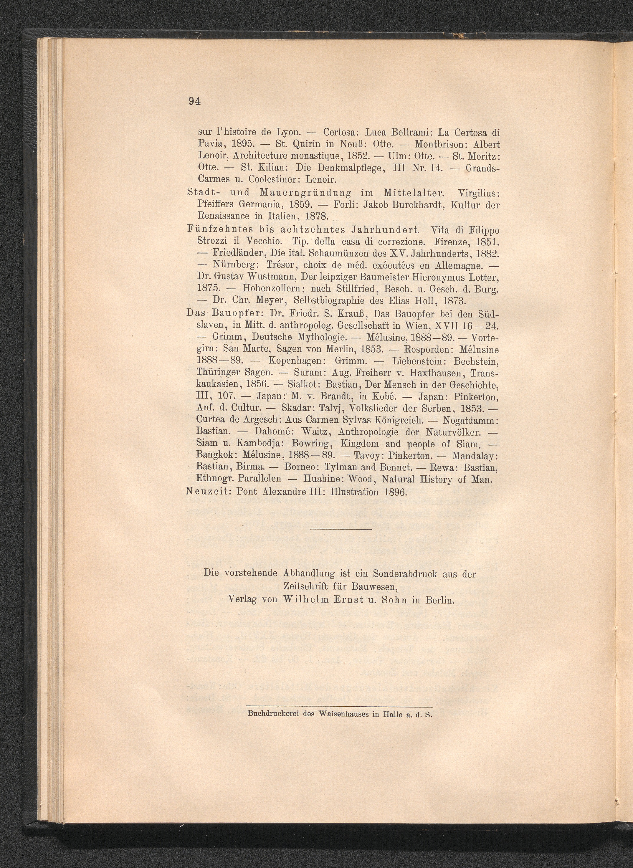 Angabe der Quellen, soweit solche nicht im Text genannt sind.