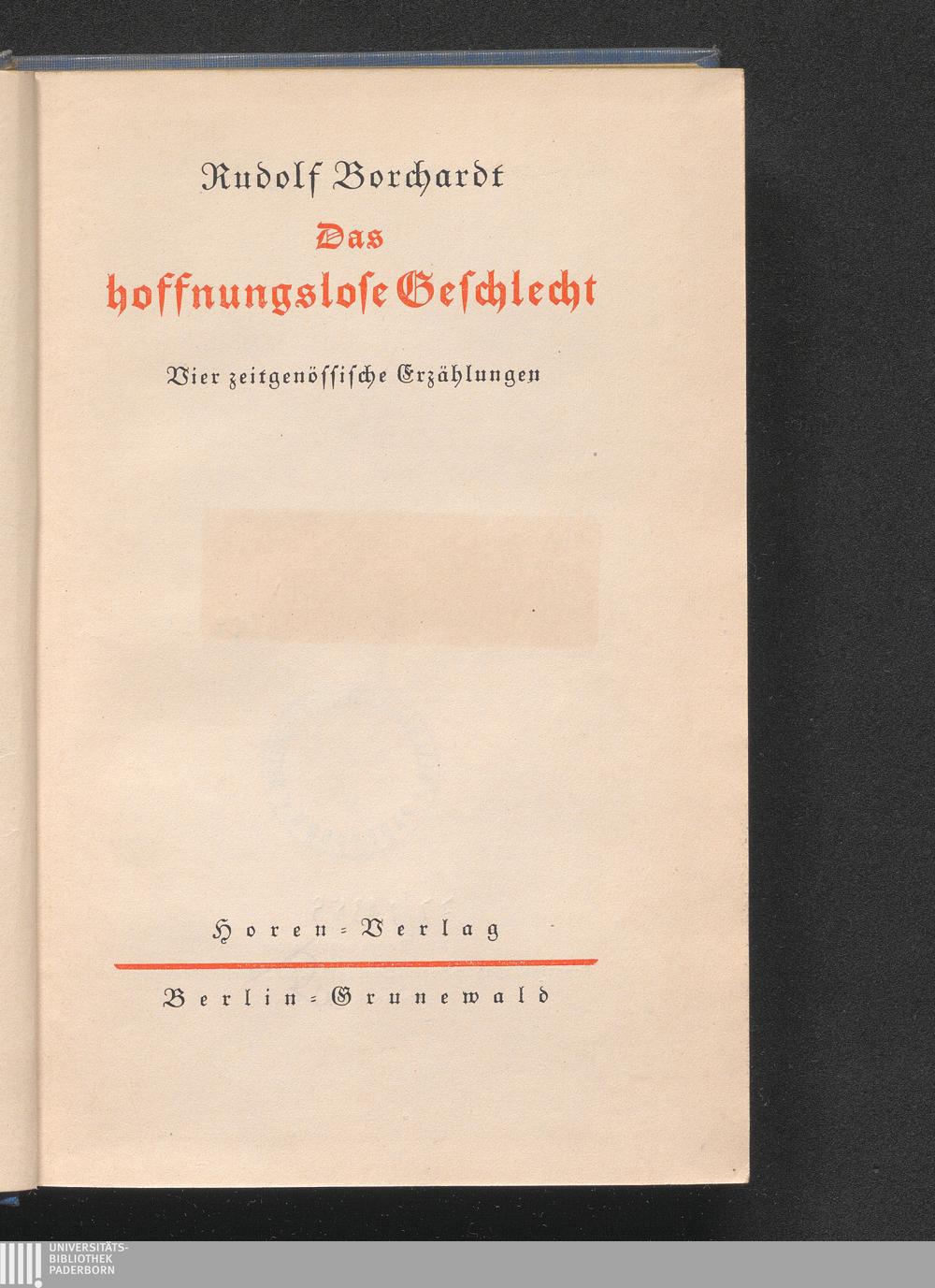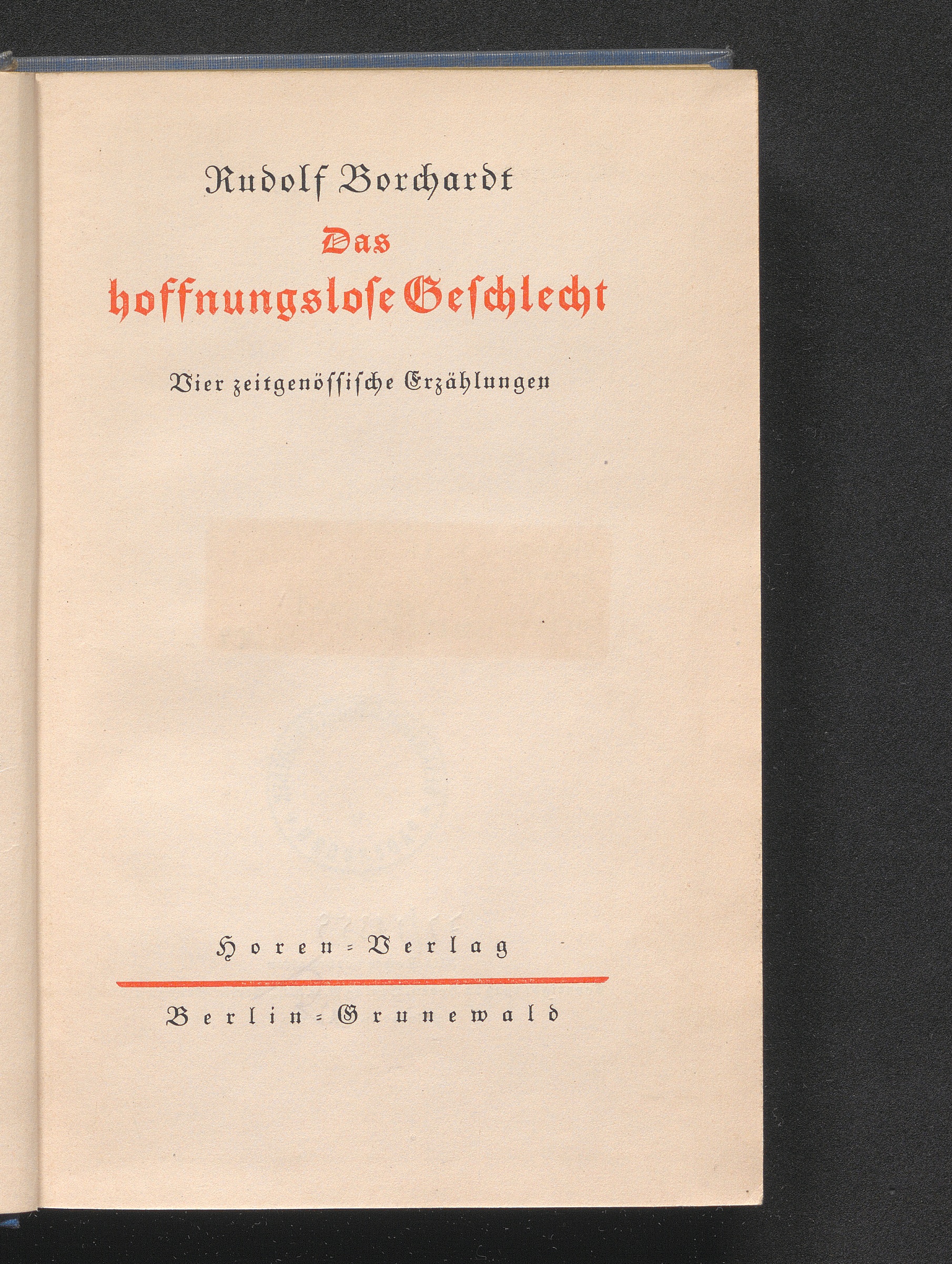 Das hoffnungslose Geschlecht : vier zeitgenössische Erzählungen / Rudolf Borchardt