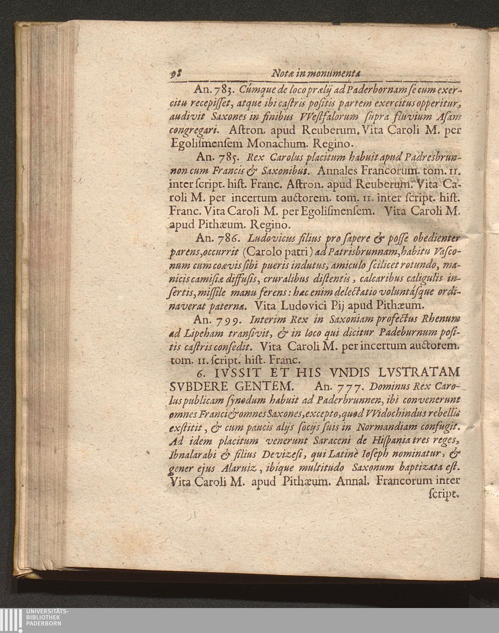 Monvmenta Paderbornensia : Ex Historia Romana Francica Saxonica Ervta Et Notis Illvstrata / [... Ferdinandvs. ... Episcopvs. Paderbornensis. ... gloria. celeberrimum. dioecesi suae. vindicavit. ...]