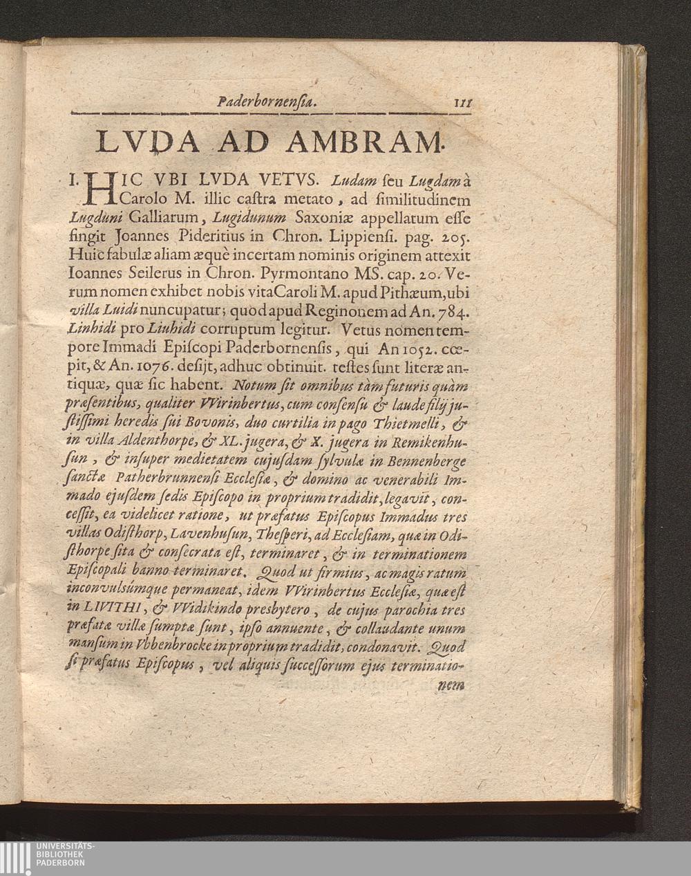 Monvmenta Paderbornensia : Ex Historia Romana Francica Saxonica Ervta Et Notis Illvstrata / [... Ferdinandvs. ... Episcopvs. Paderbornensis. ... gloria. celeberrimum. dioecesi suae. vindicavit. ...]