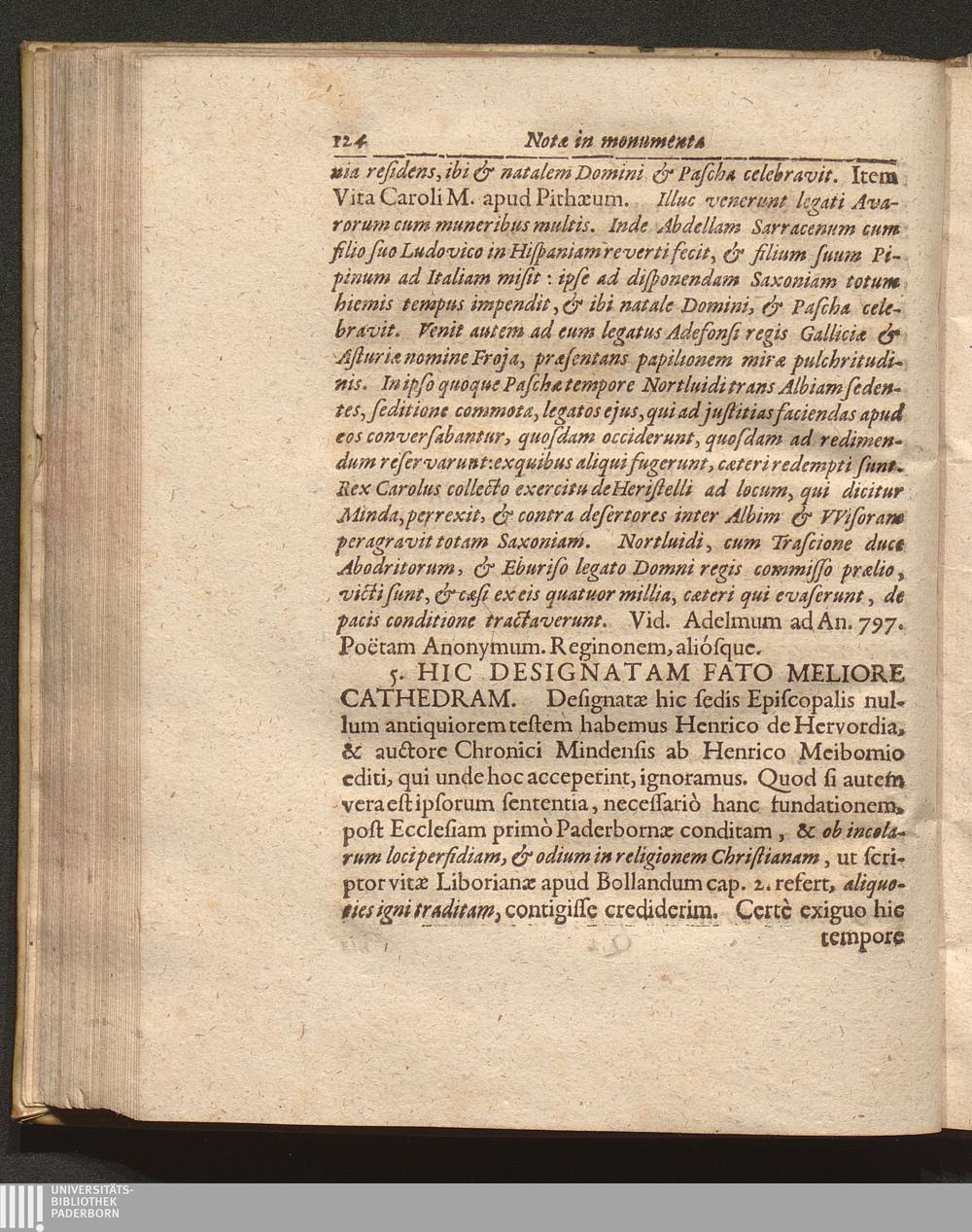 Monvmenta Paderbornensia : Ex Historia Romana Francica Saxonica Ervta Et Notis Illvstrata / [... Ferdinandvs. ... Episcopvs. Paderbornensis. ... gloria. celeberrimum. dioecesi suae. vindicavit. ...]