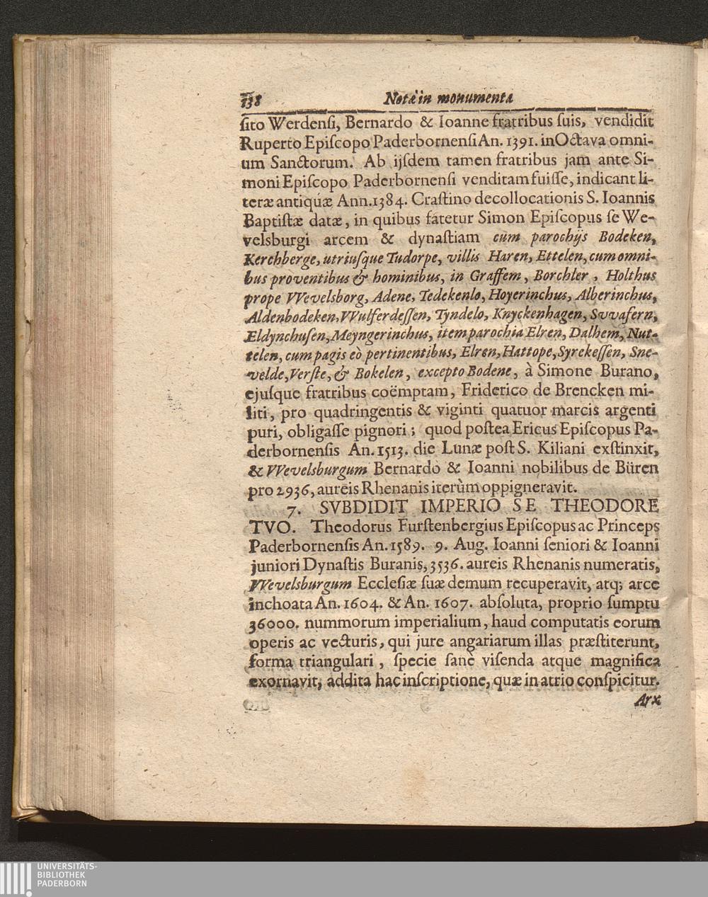 Monvmenta Paderbornensia : Ex Historia Romana Francica Saxonica Ervta Et Notis Illvstrata / [... Ferdinandvs. ... Episcopvs. Paderbornensis. ... gloria. celeberrimum. dioecesi suae. vindicavit. ...]