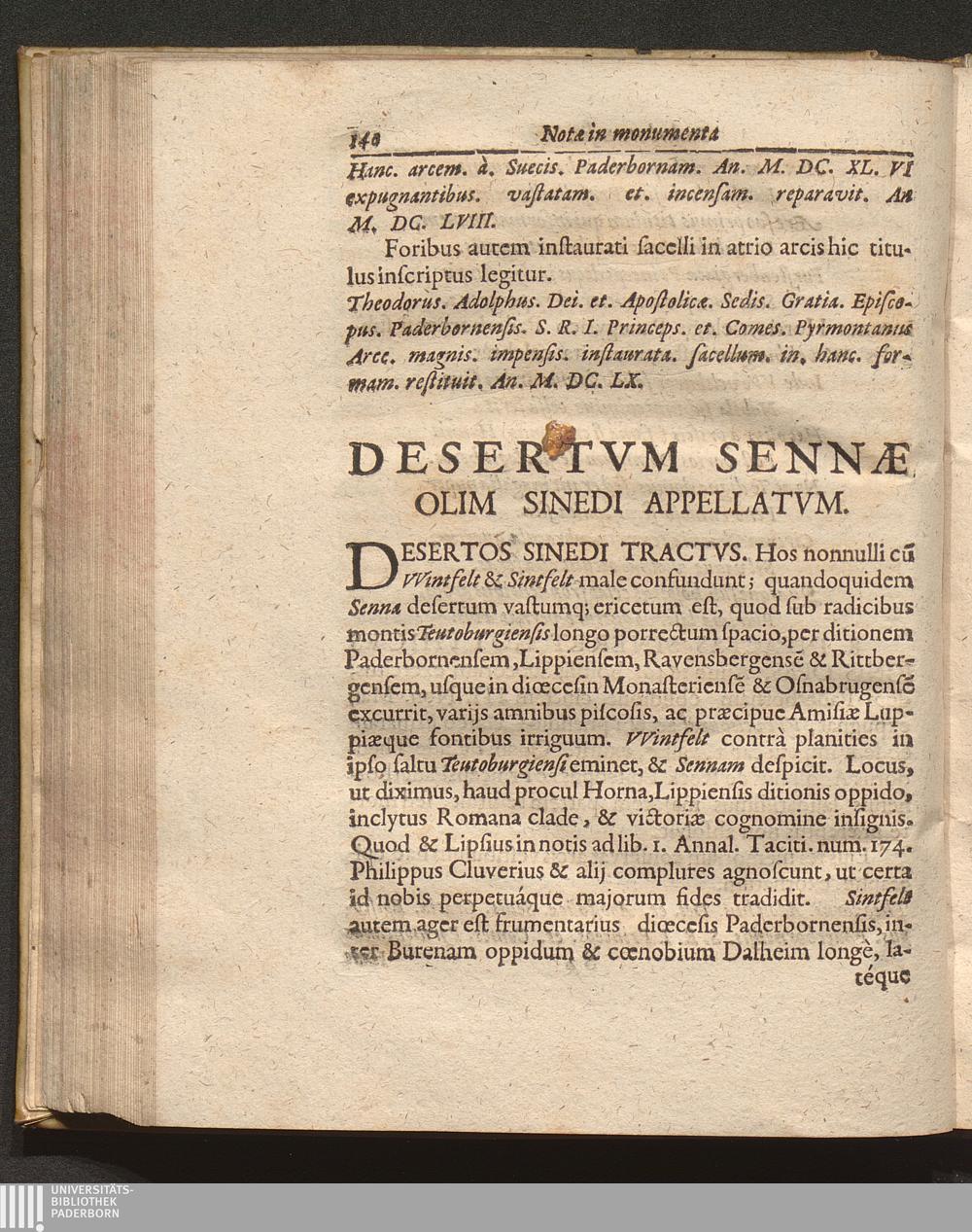 Monvmenta Paderbornensia : Ex Historia Romana Francica Saxonica Ervta Et Notis Illvstrata / [... Ferdinandvs. ... Episcopvs. Paderbornensis. ... gloria. celeberrimum. dioecesi suae. vindicavit. ...]