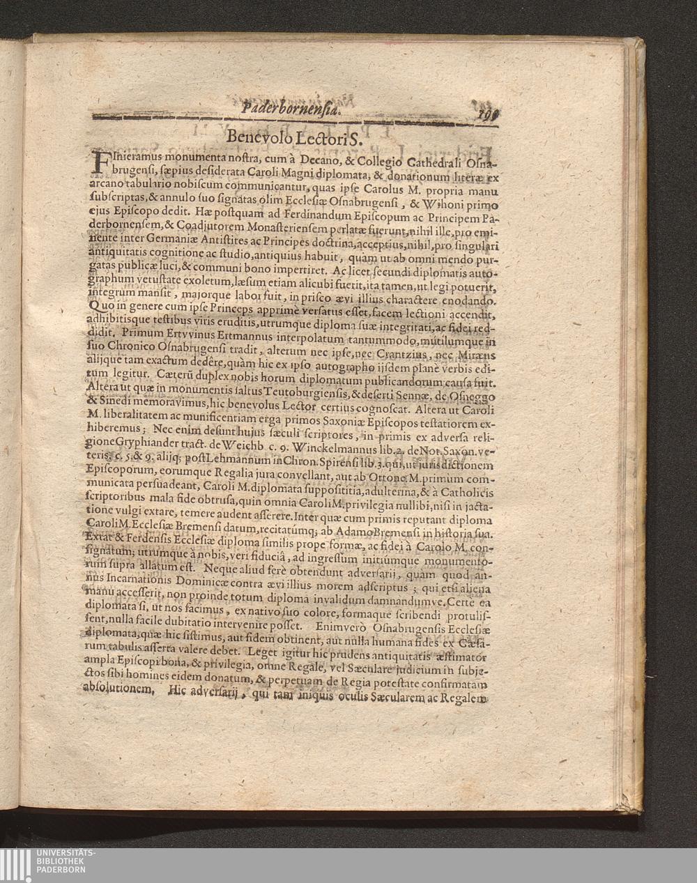 Monvmenta Paderbornensia : Ex Historia Romana Francica Saxonica Ervta Et Notis Illvstrata / [... Ferdinandvs. ... Episcopvs. Paderbornensis. ... gloria. celeberrimum. dioecesi suae. vindicavit. ...]
