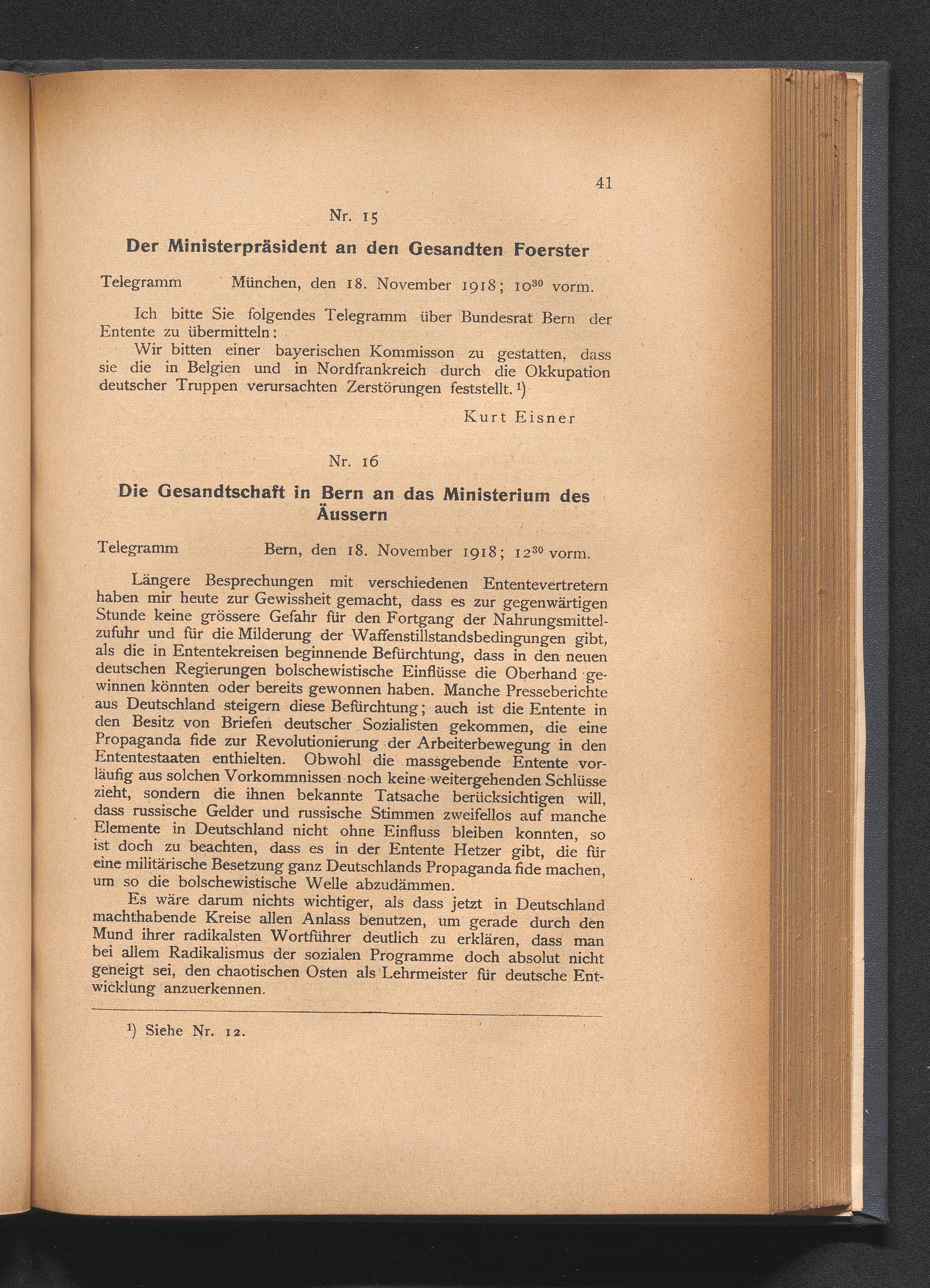 16. Telegramm der Gesandtschaft Bern an das Ministerium des Äussern 18. November[...]