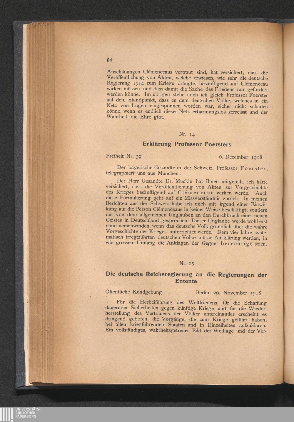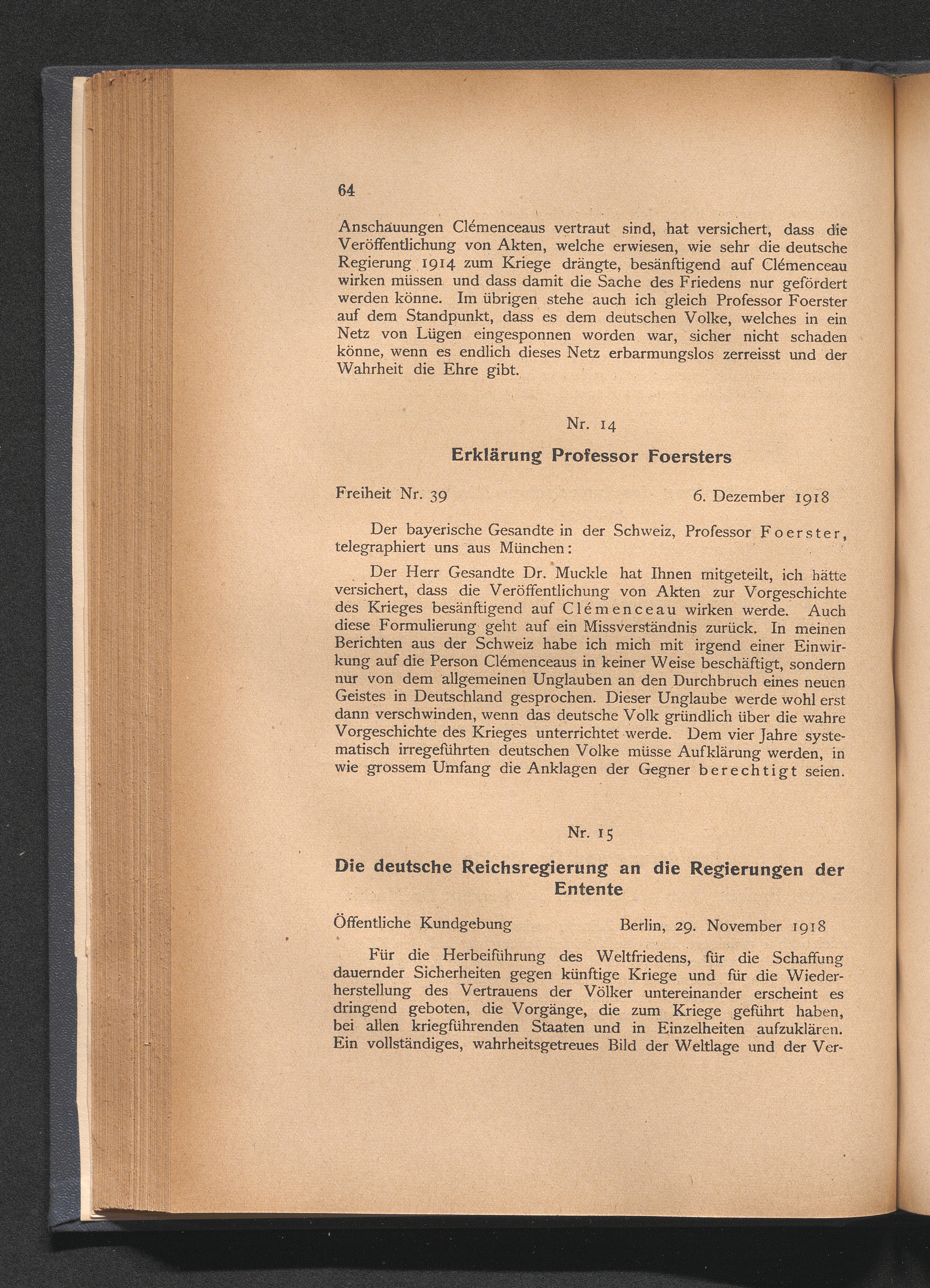 15. Die deutsche Reichsregierung an die Regierungen der Entente