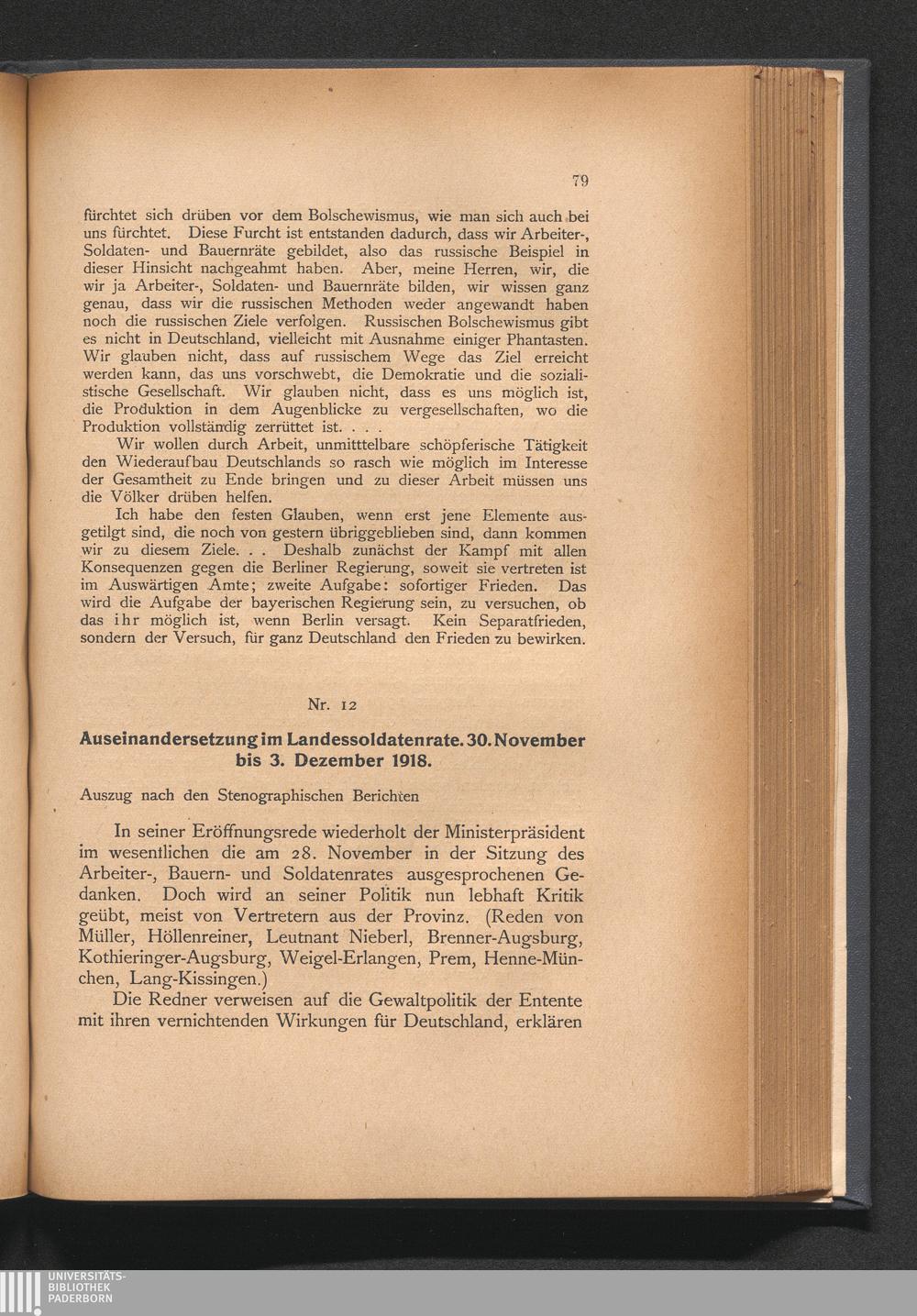 12. Auseinandersetzung im Landessoldatenrate. 30. November bis 3. Dezember 1918
