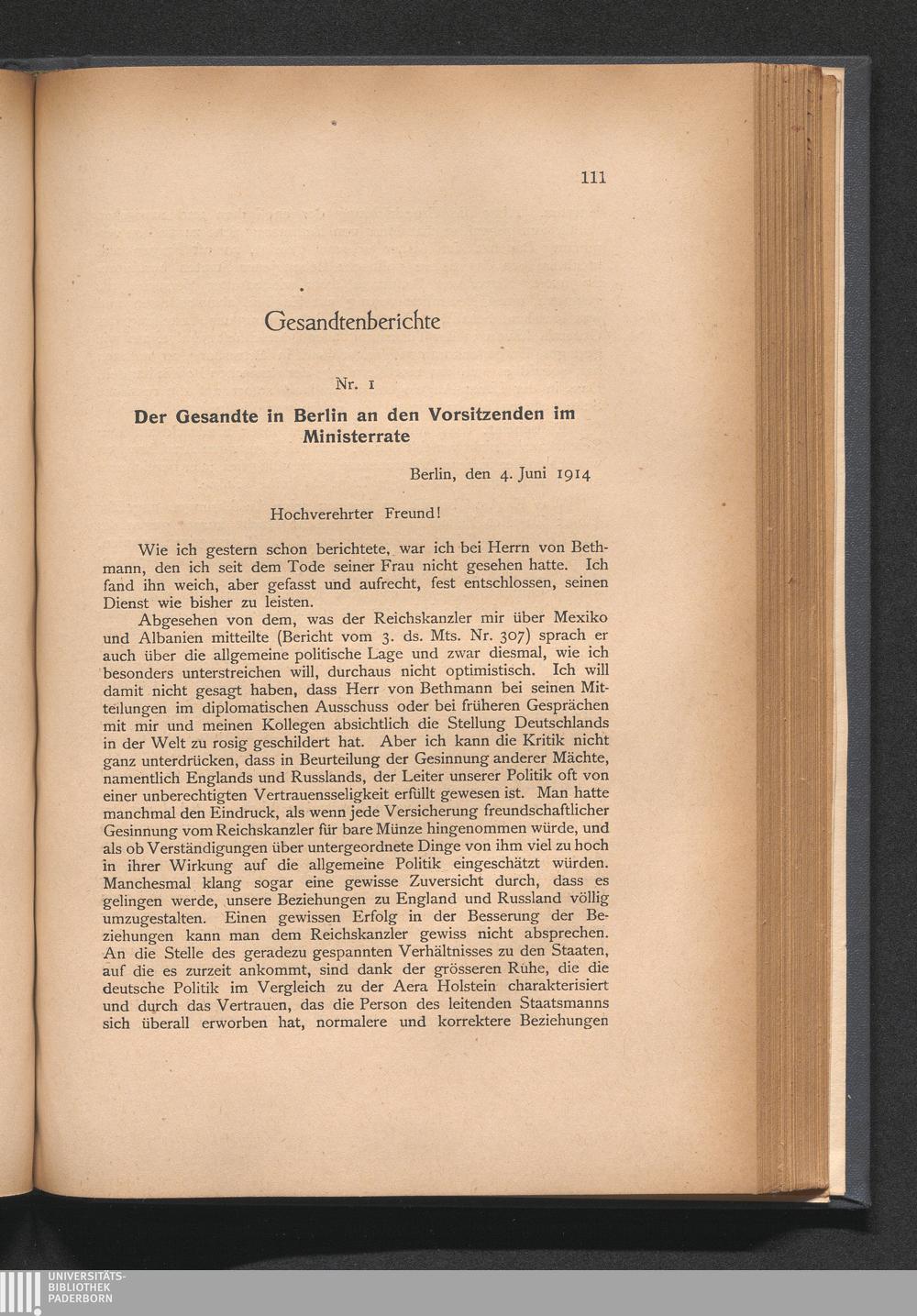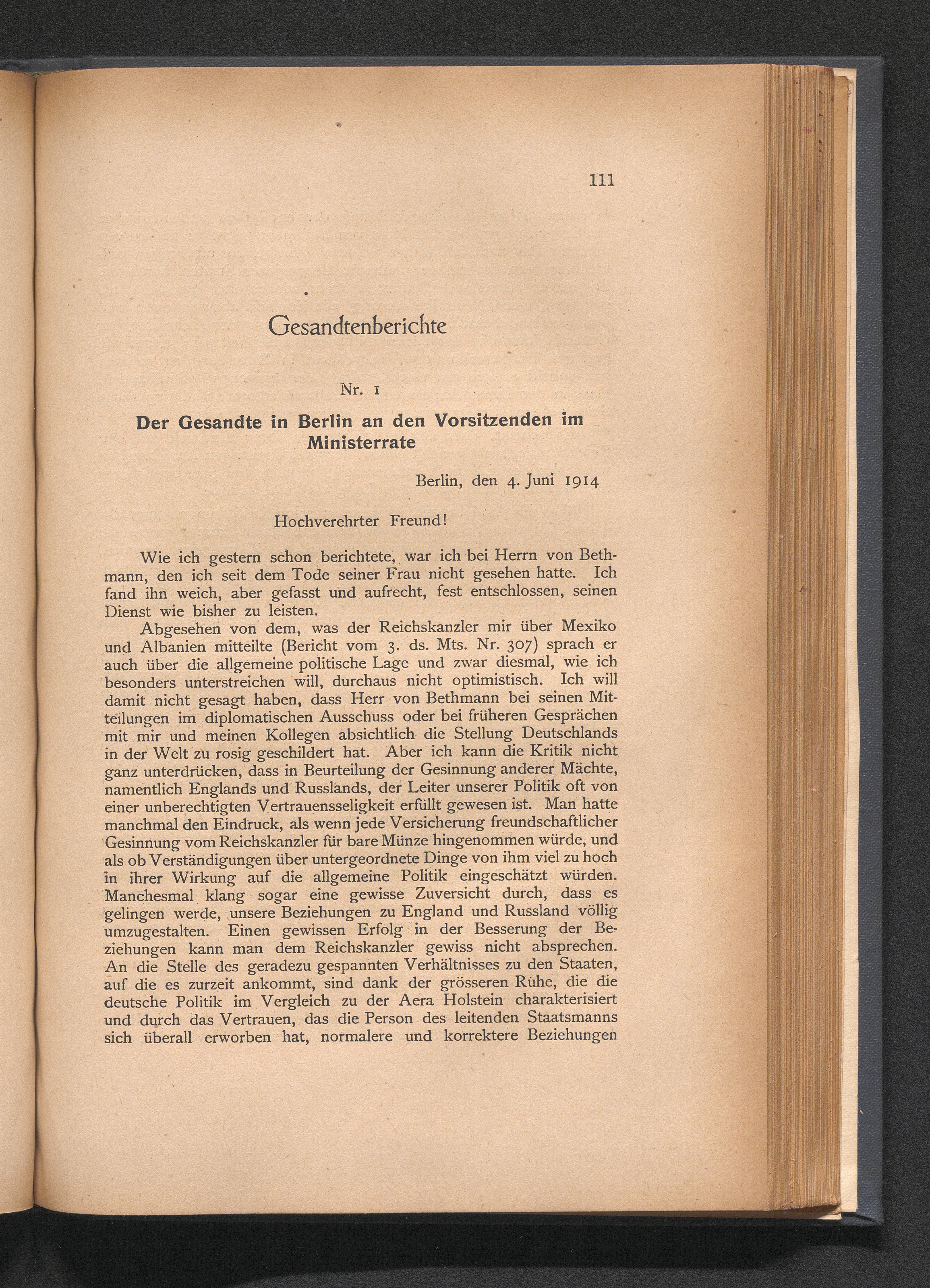 1. Der Gesandte in Berlin an den Vorsitzenden im Ministerrate