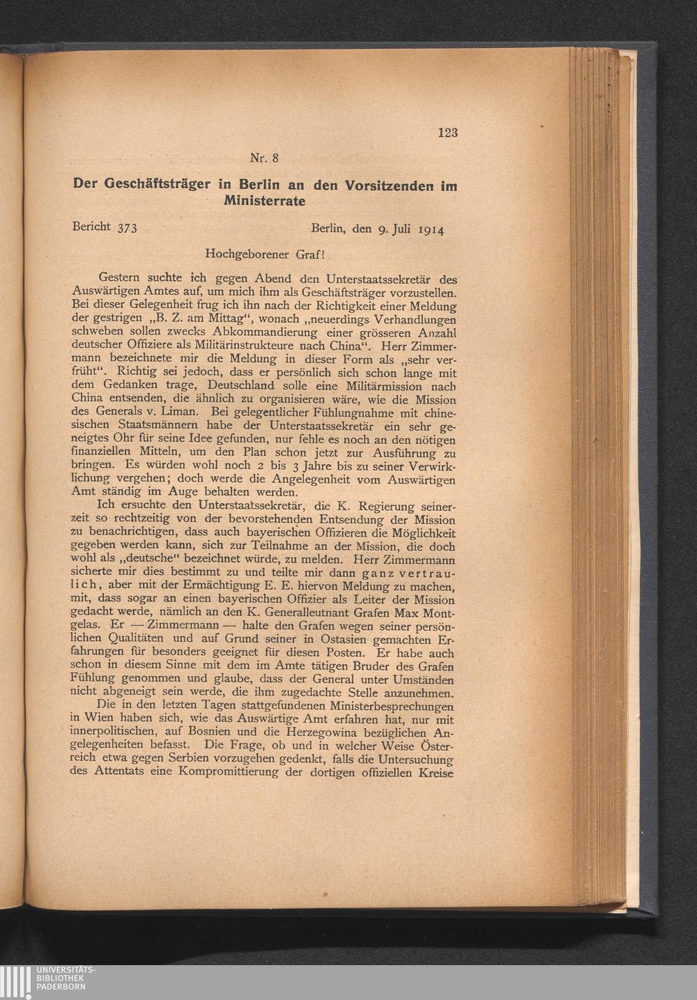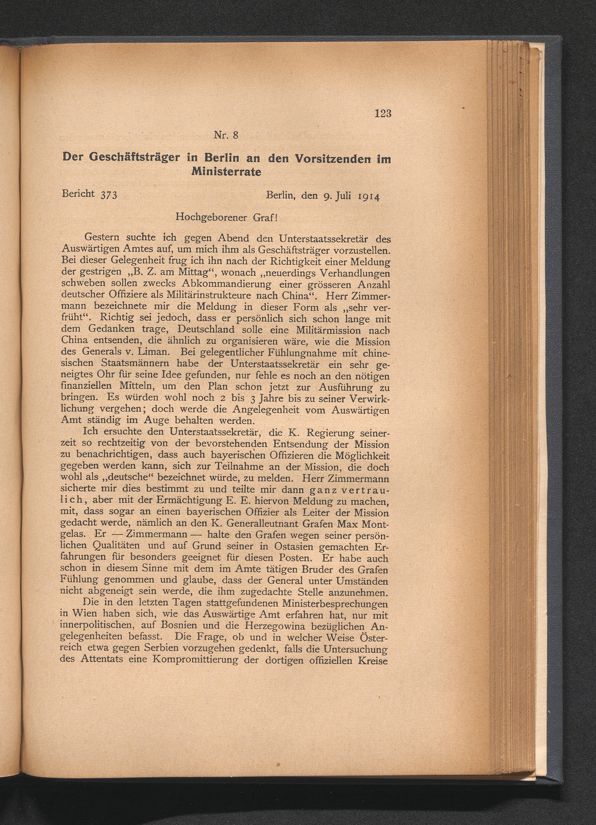 8. Der Geschäftsträger in Berlin an den Vorsitzenden im Ministerrate