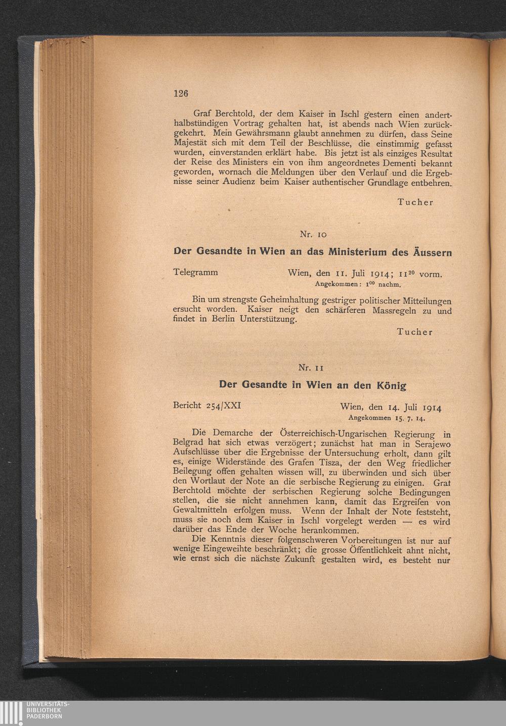 11. Der Gesandte in Wien an den König