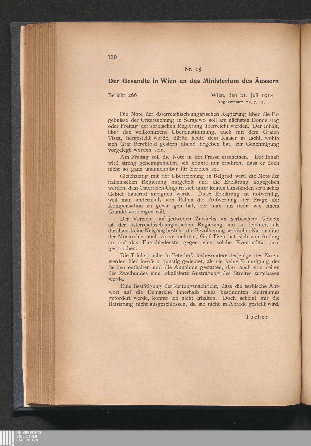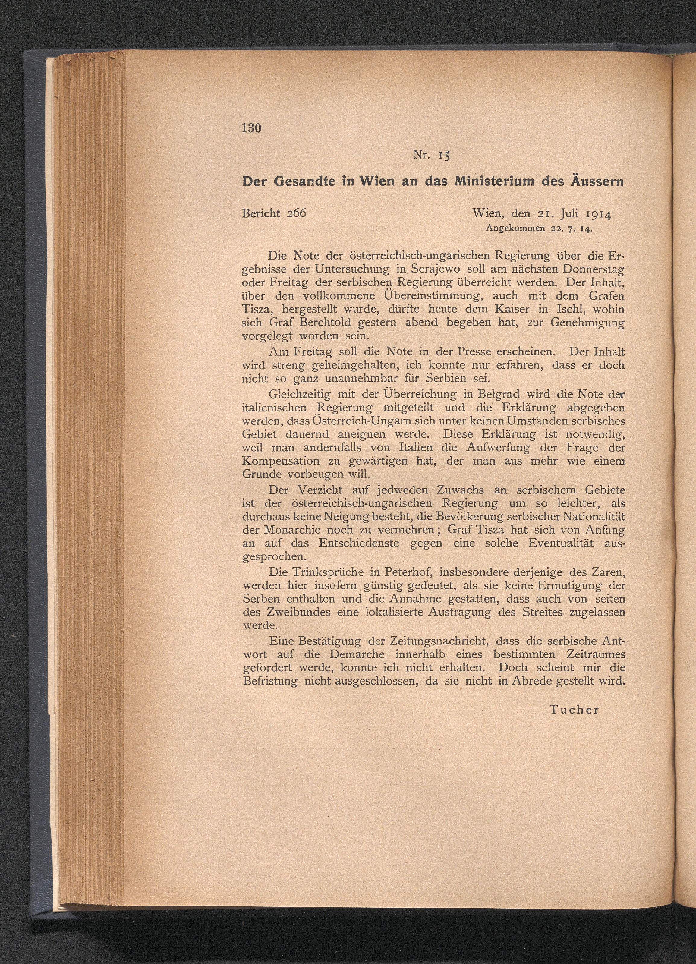 15. Der Gesandte in Wien an das Ministerium des Äussern
