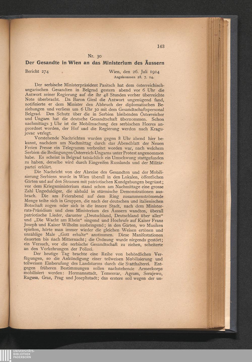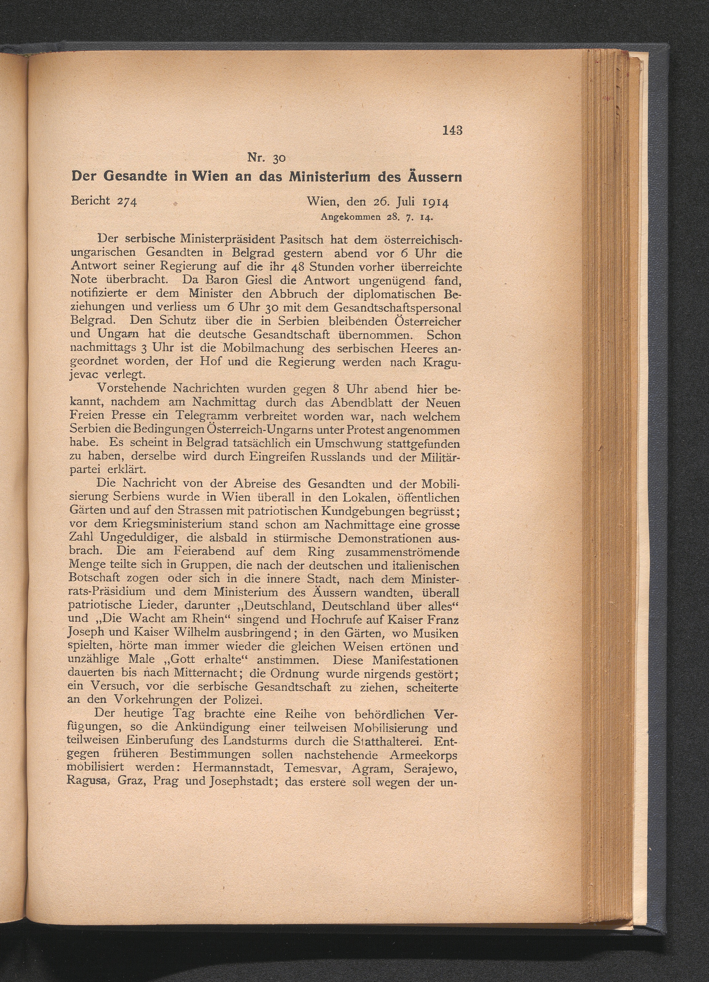 30. Der Gesandte in Wien an das Ministerium des Äussern