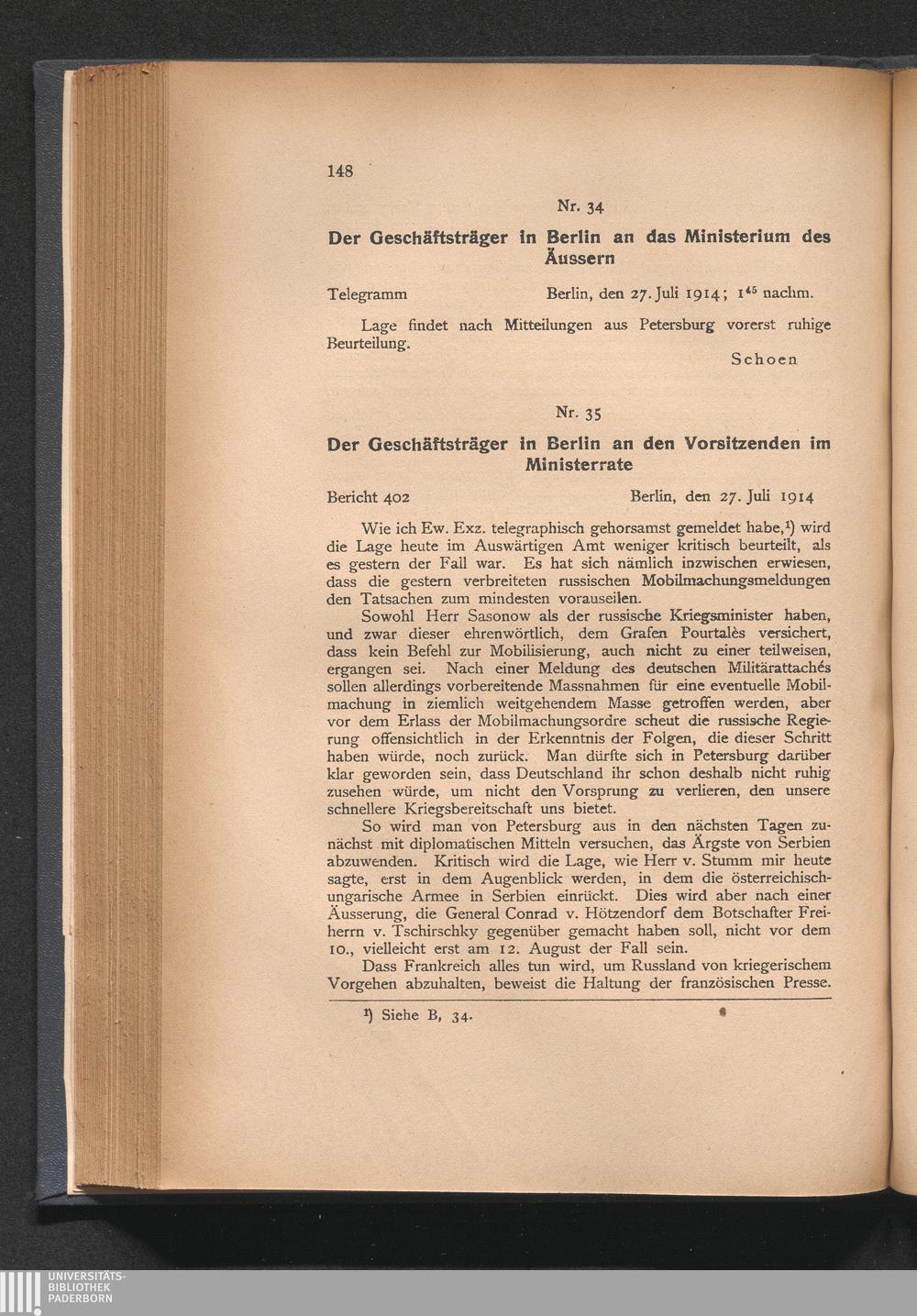 35. Der Geschäftsträger in Berlin an den Vorsitzenden im Ministerrate