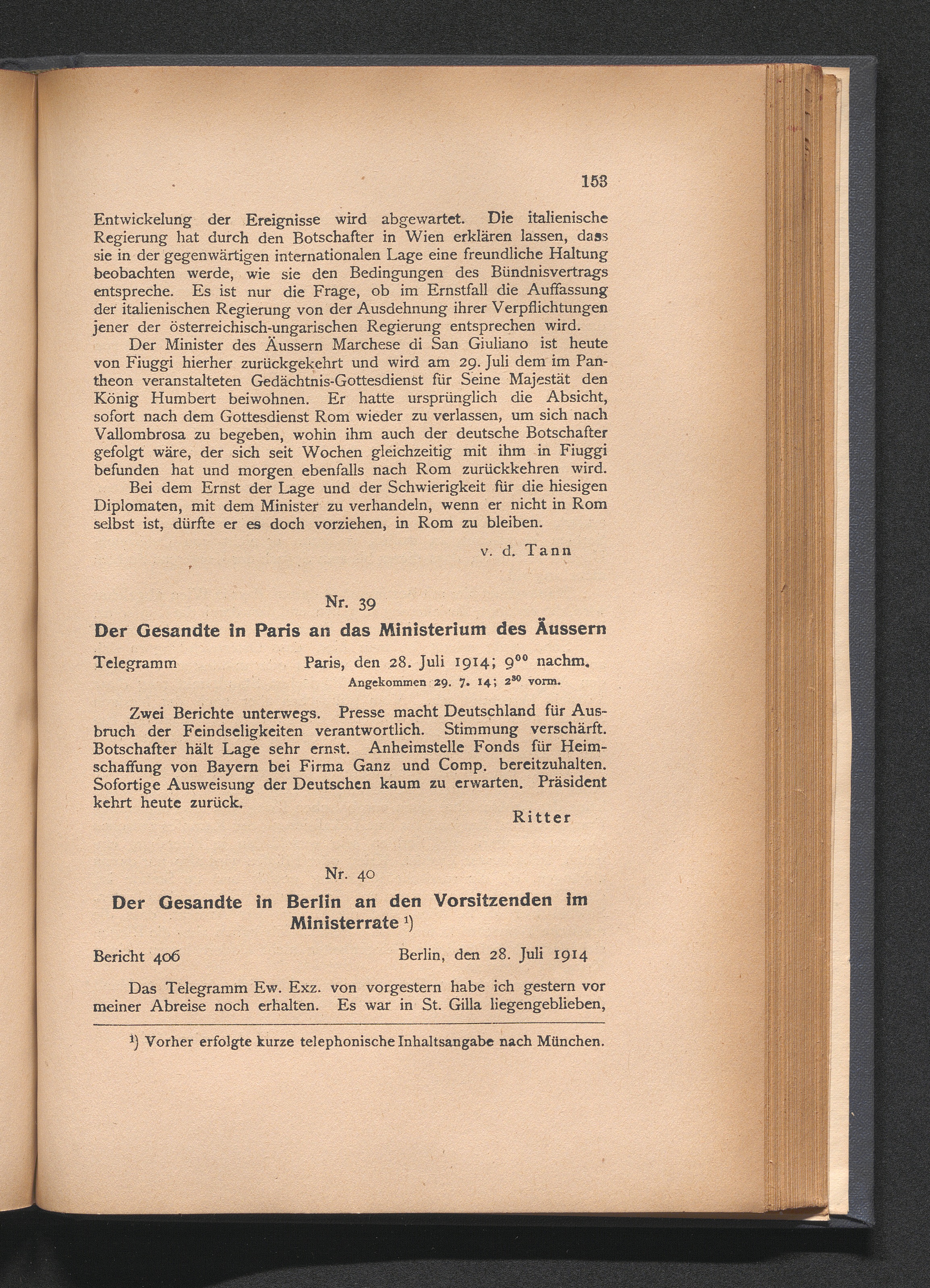 B Bayerische Gesandtenberichte aus den letzten Vorkriegswochen