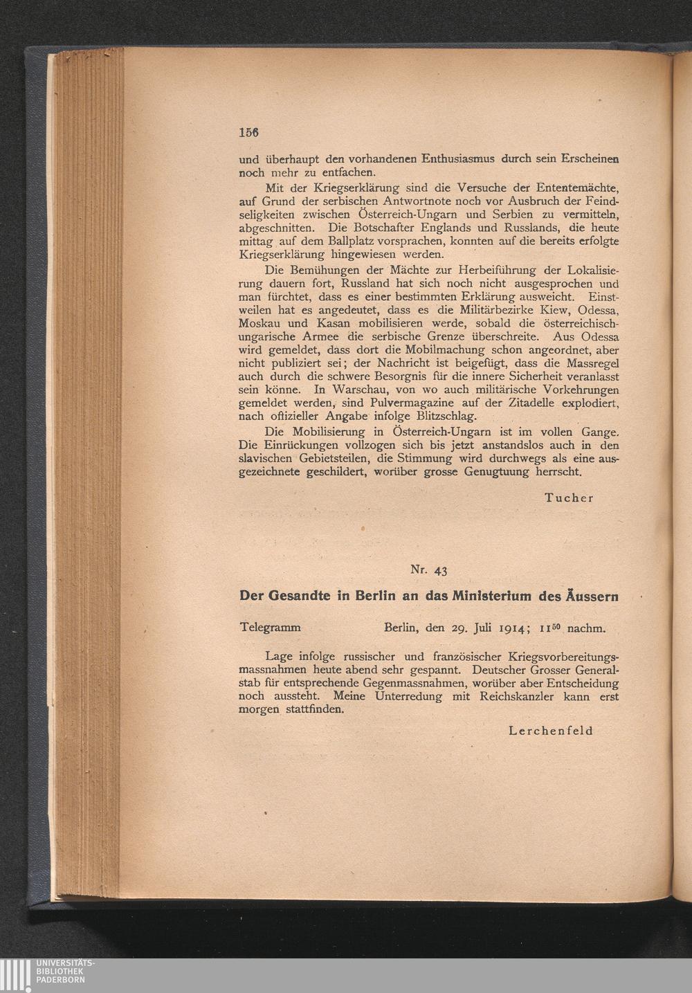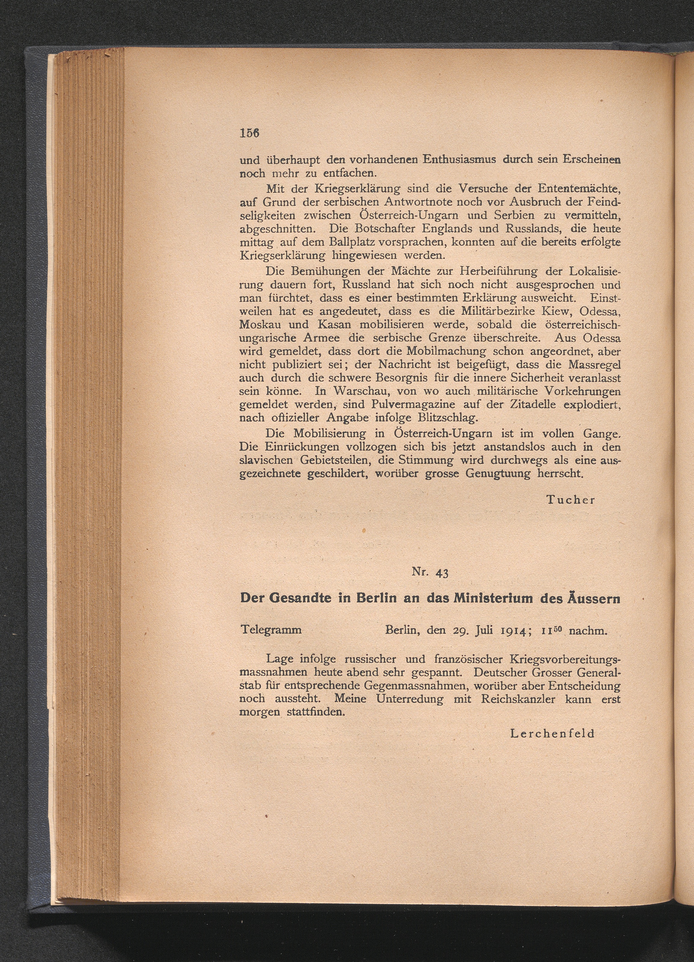 43. Der Gesandte in Berlin an das Ministerium des Äussern