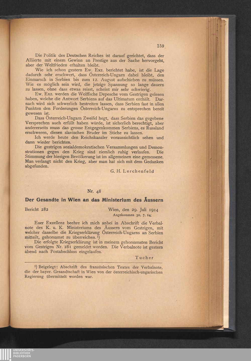 48. Der Gesandte in Wien an das Ministerium des Äussern