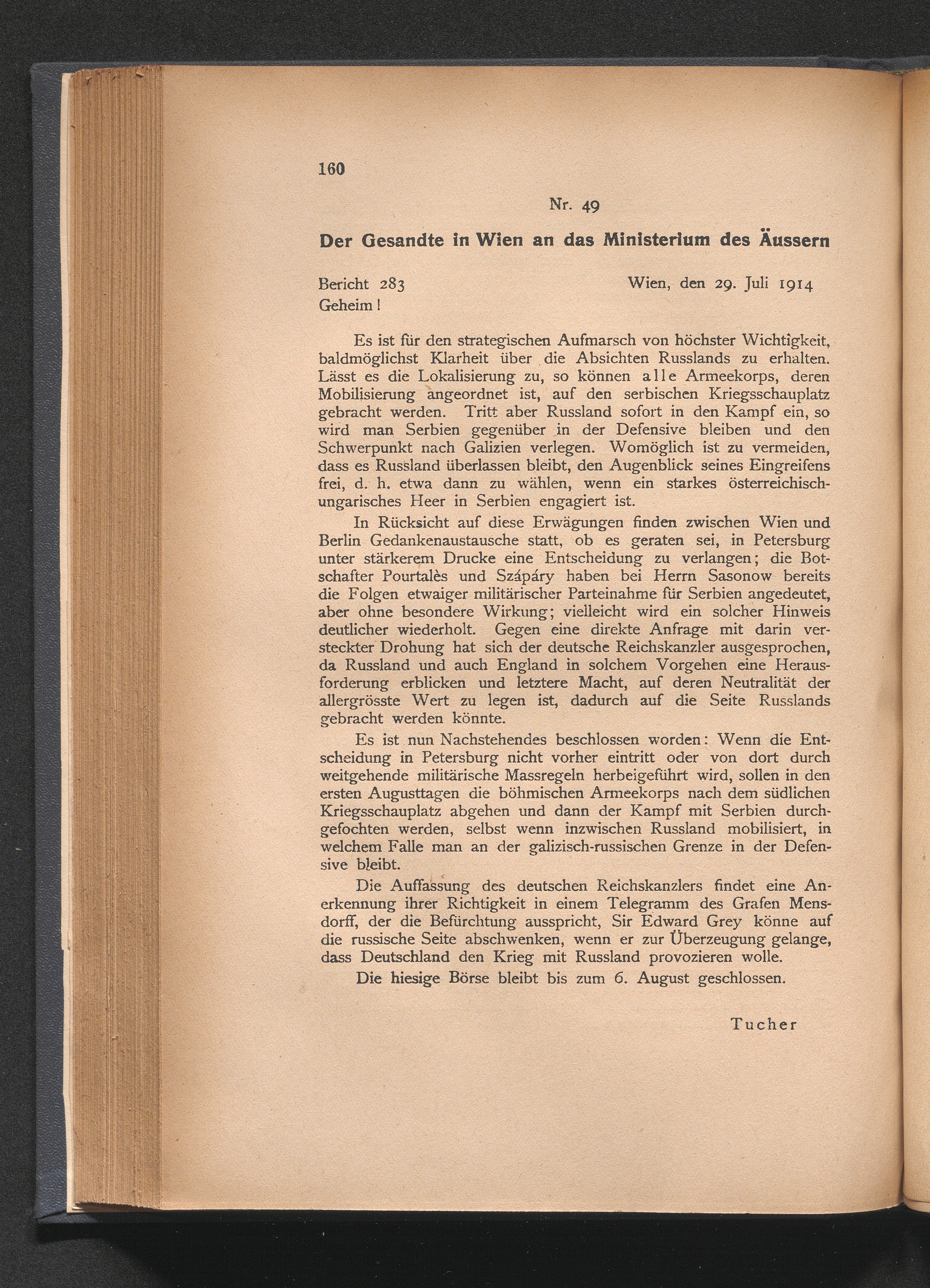 49. Der Gesandte in Wien an das Ministerium des Äussern