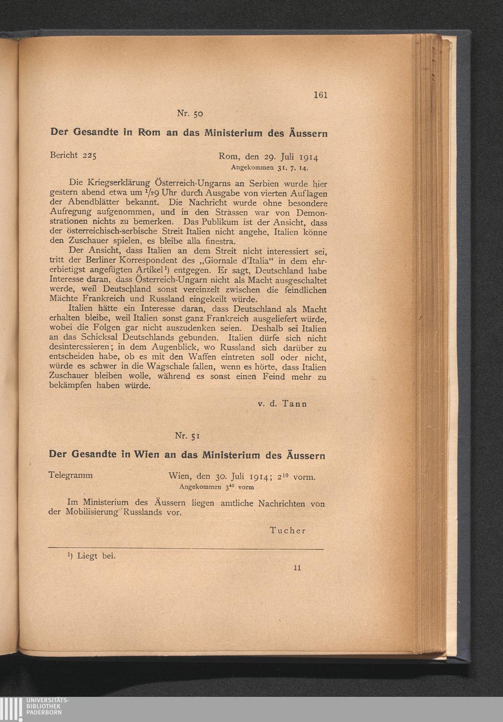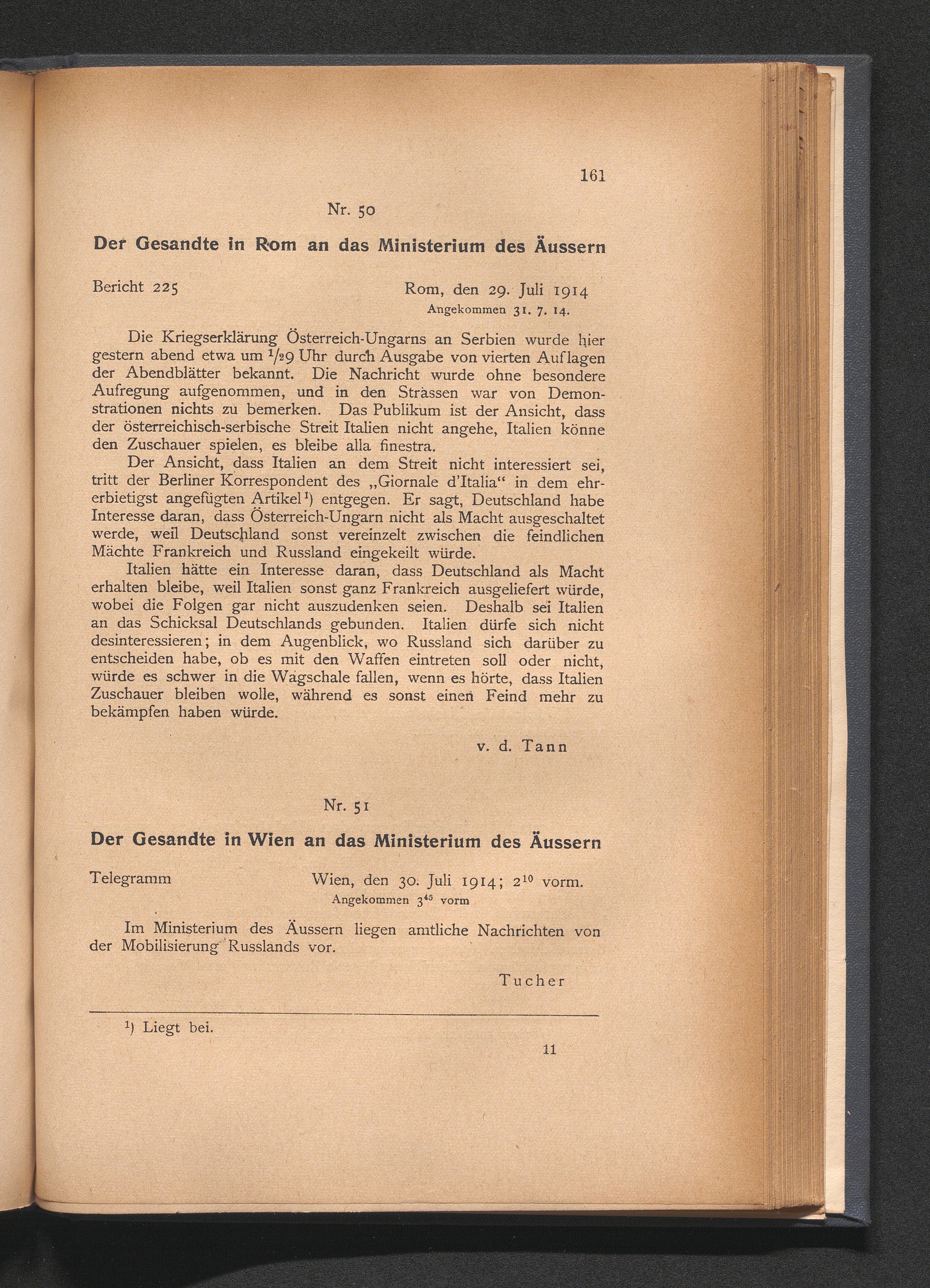 B Bayerische Gesandtenberichte aus den letzten Vorkriegswochen