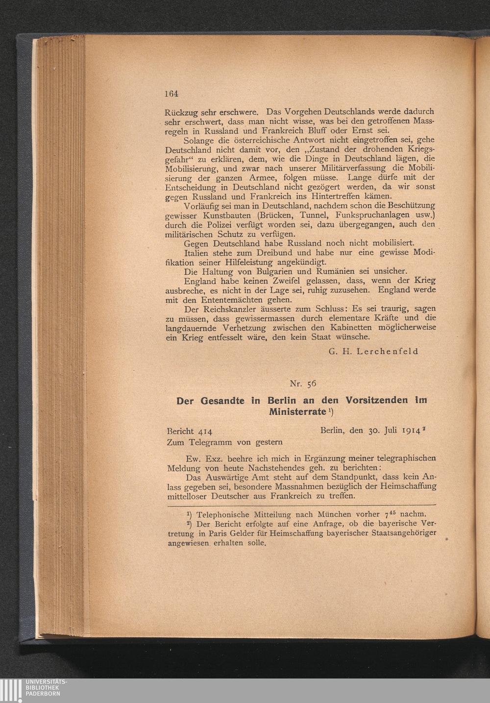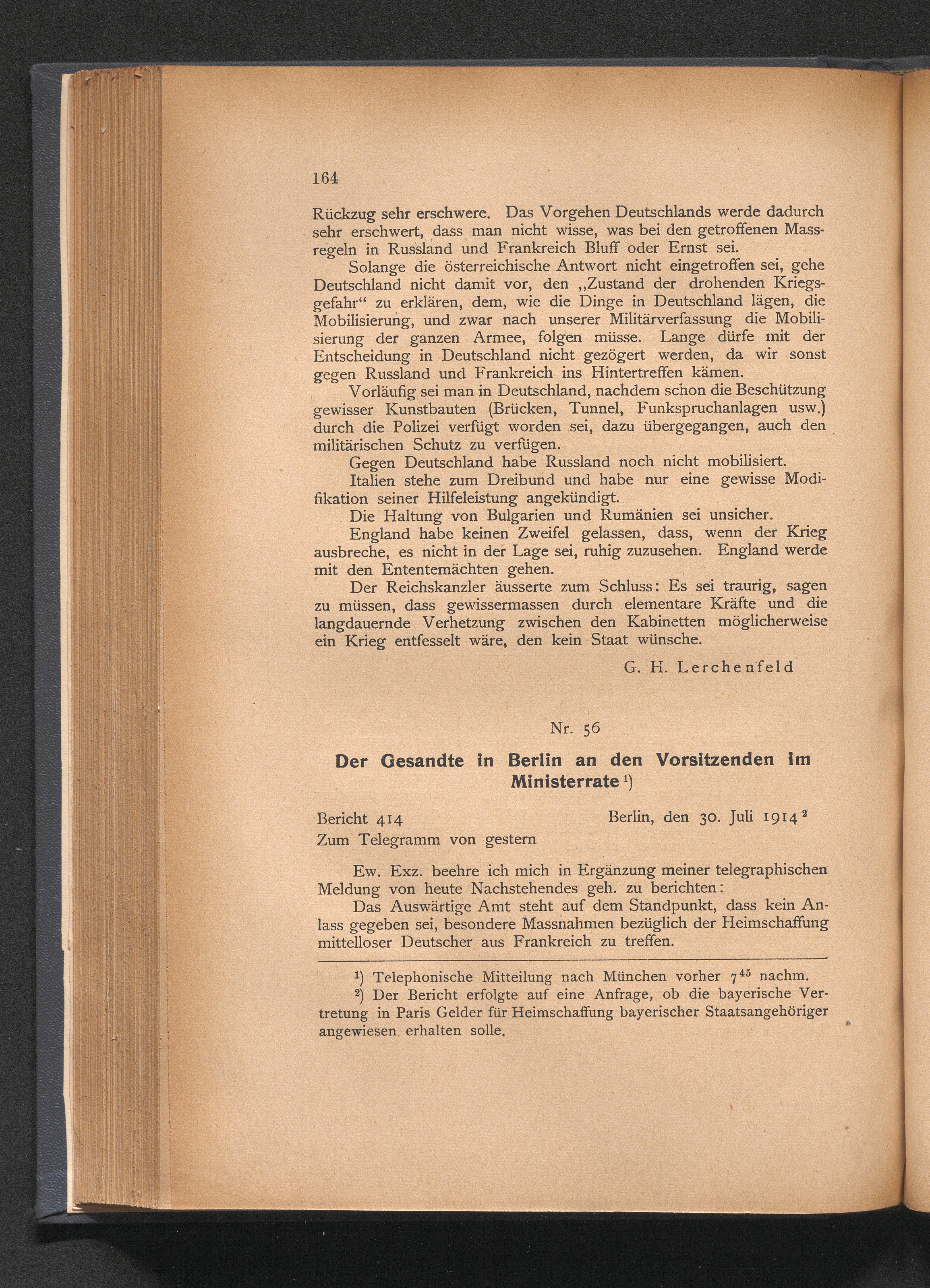 B Bayerische Gesandtenberichte aus den letzten Vorkriegswochen