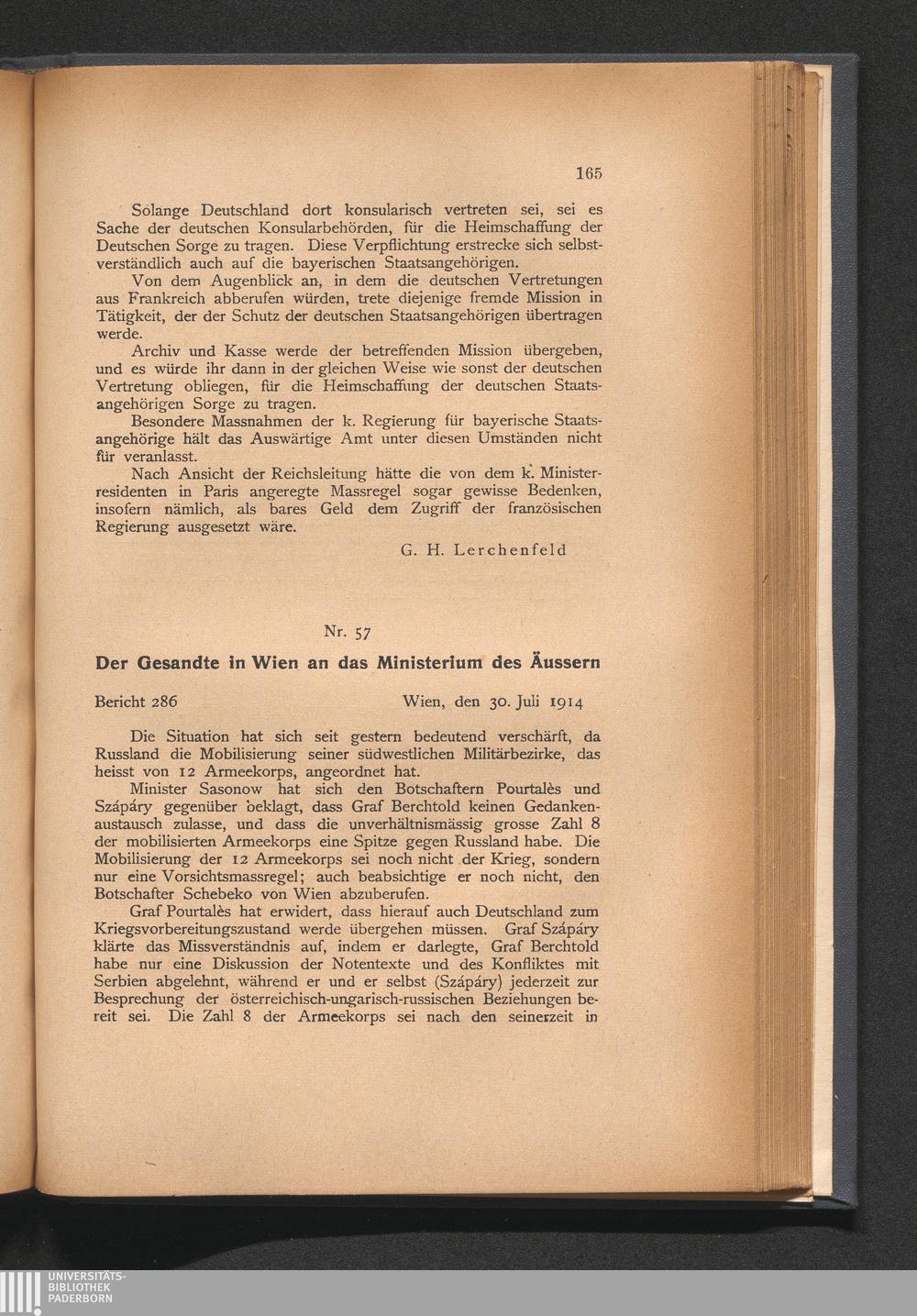 B Bayerische Gesandtenberichte aus den letzten Vorkriegswochen