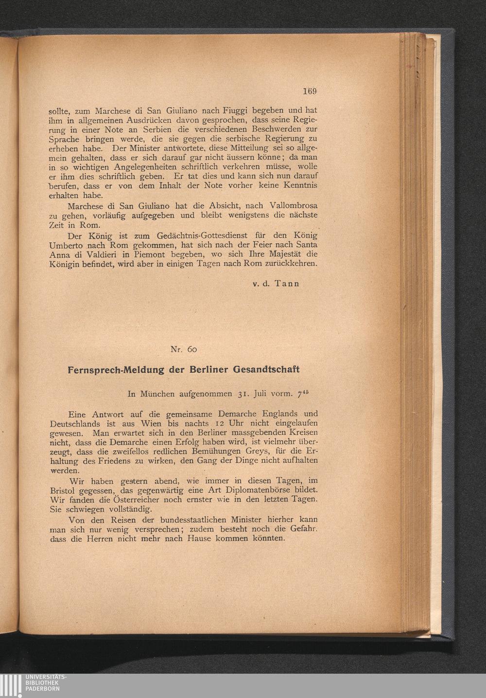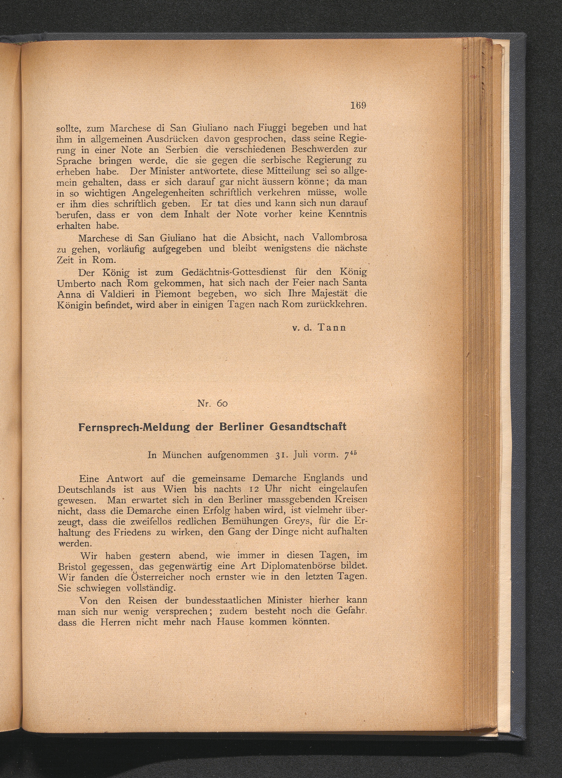 60. Fernsprech-Meldung der Berliner Gesandtschaft