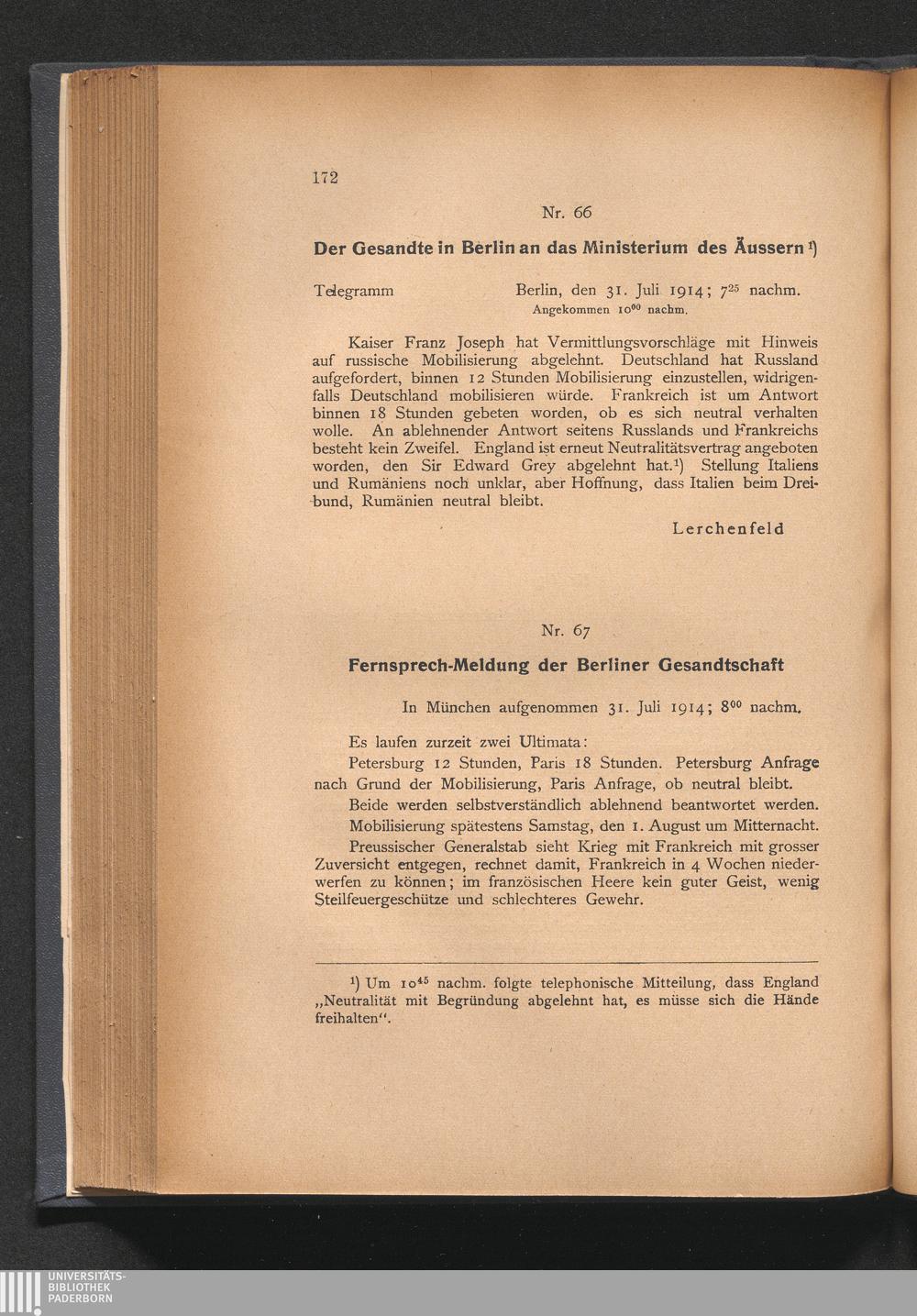 67. Fernsprechmeldung der Berliner Gesandtschaft