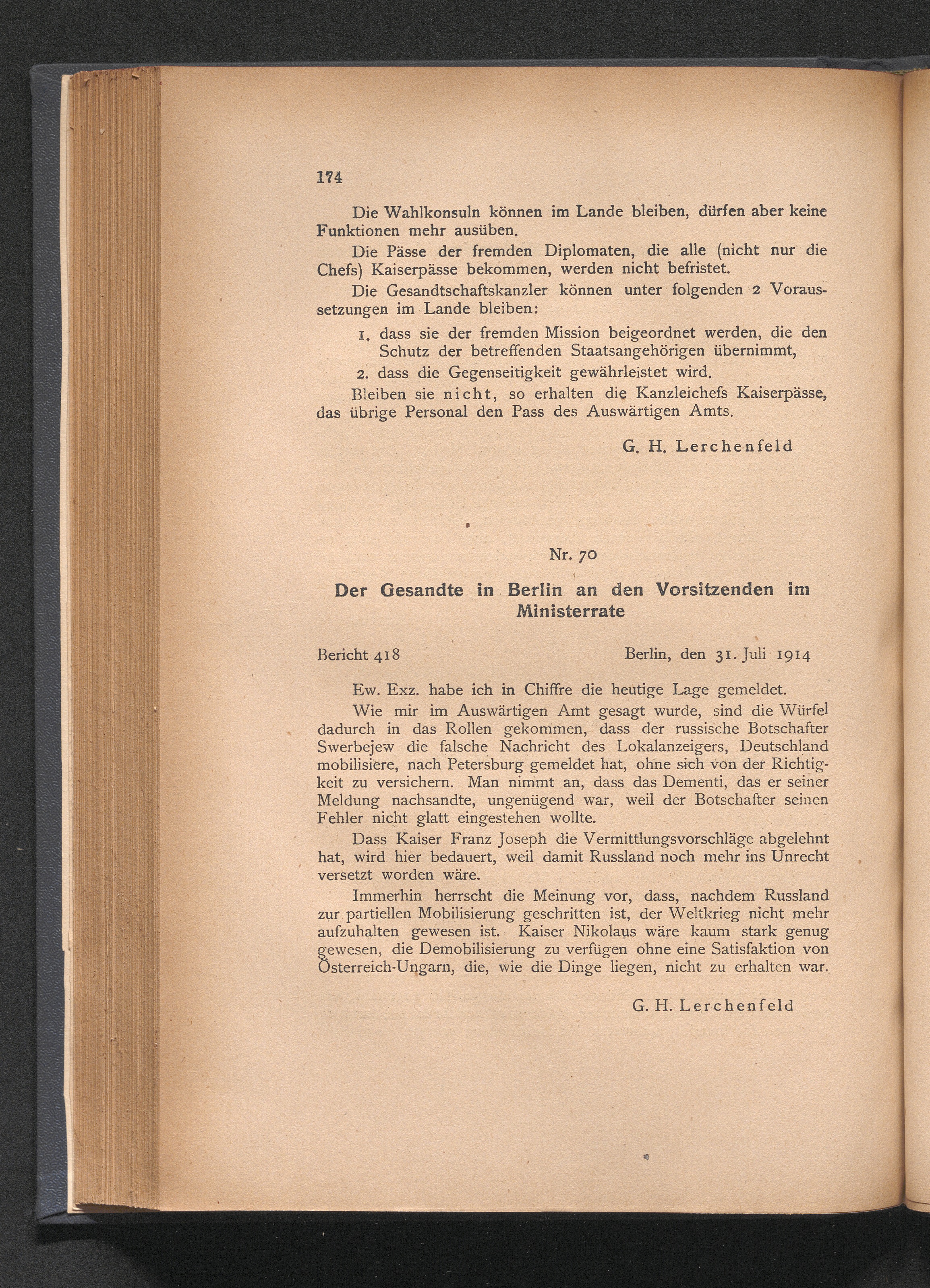 70. Der Gesandte in Berlin an den Vorsitzenden im Ministerrate