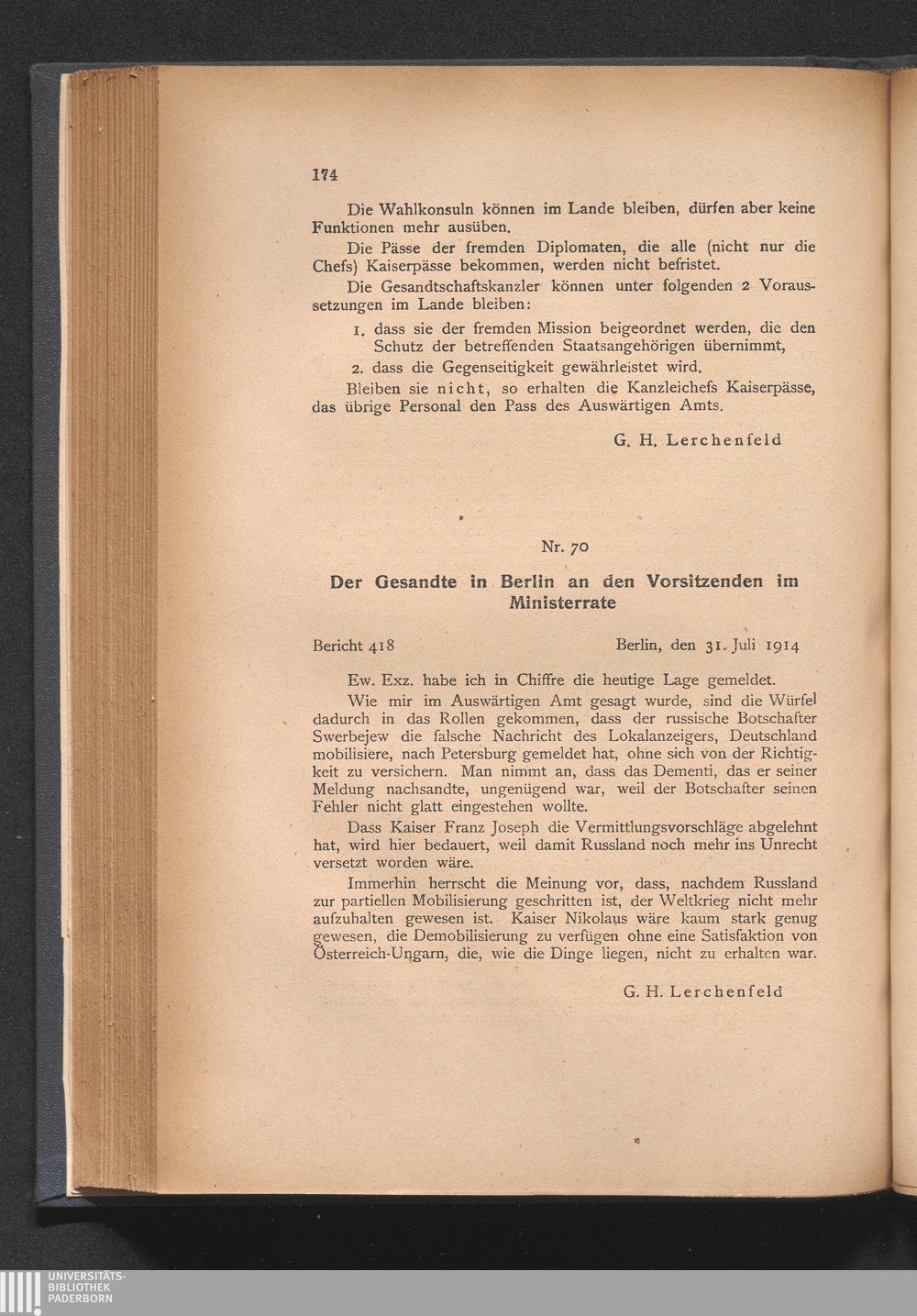 B Bayerische Gesandtenberichte aus den letzten Vorkriegswochen