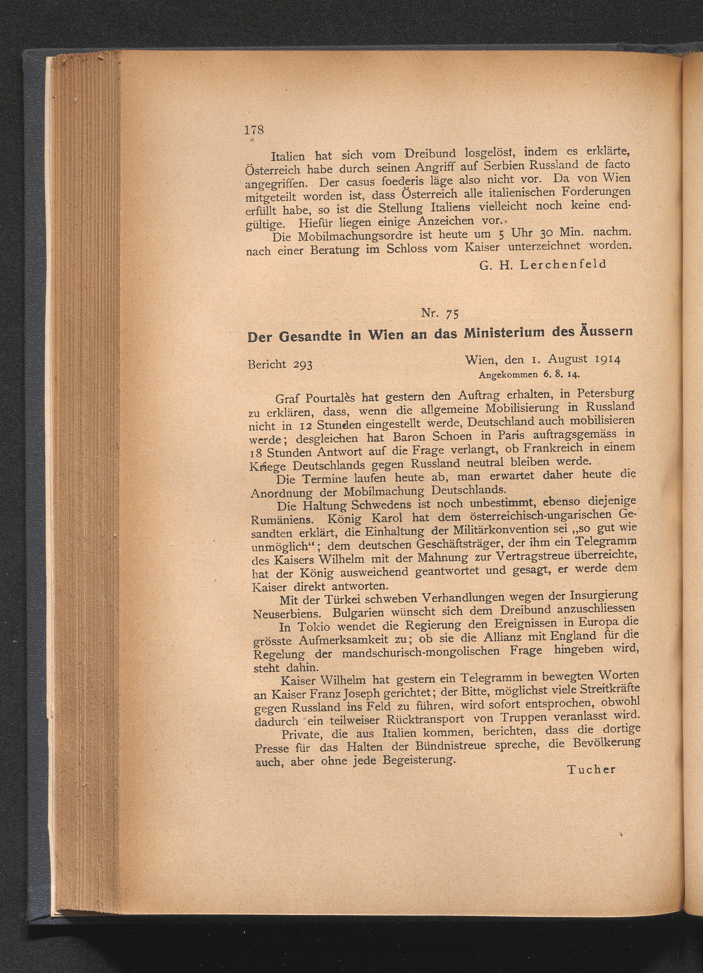 75. Der Gesandte in Wien an das Ministerium des Äussern