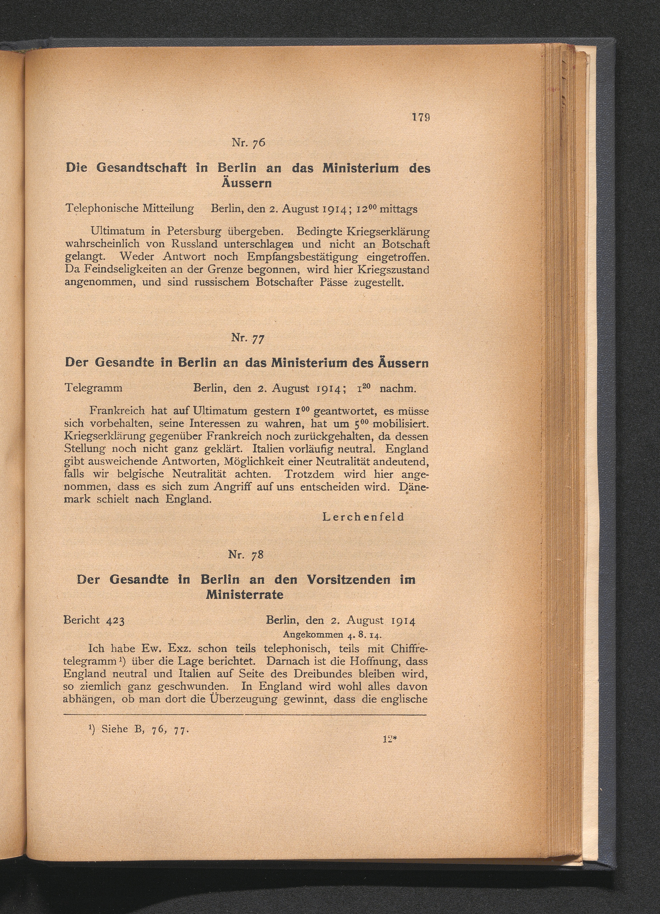 B Bayerische Gesandtenberichte aus den letzten Vorkriegswochen