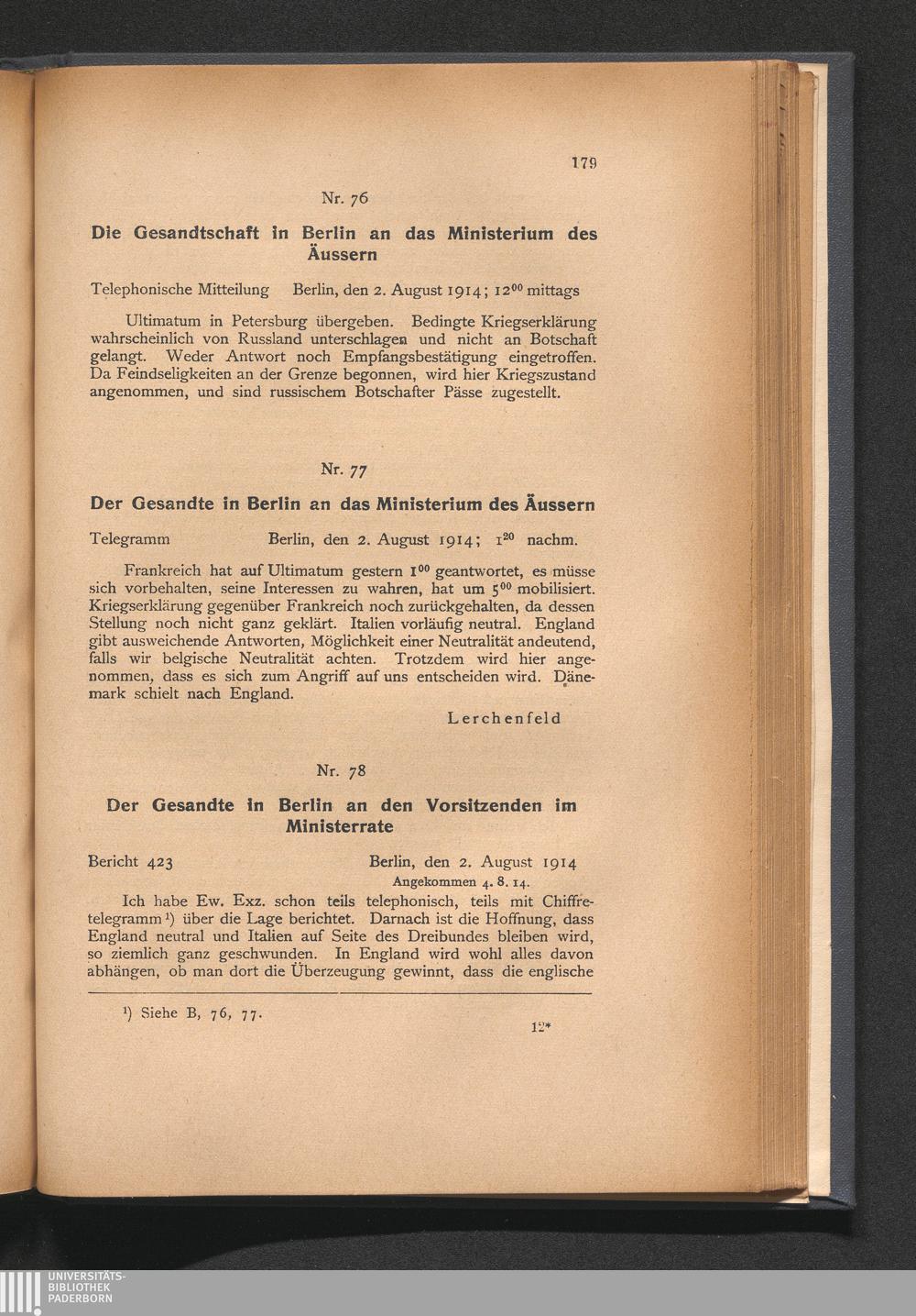 78. Der Gesandte in Berlin an den Vorsitzenden im Ministerrate