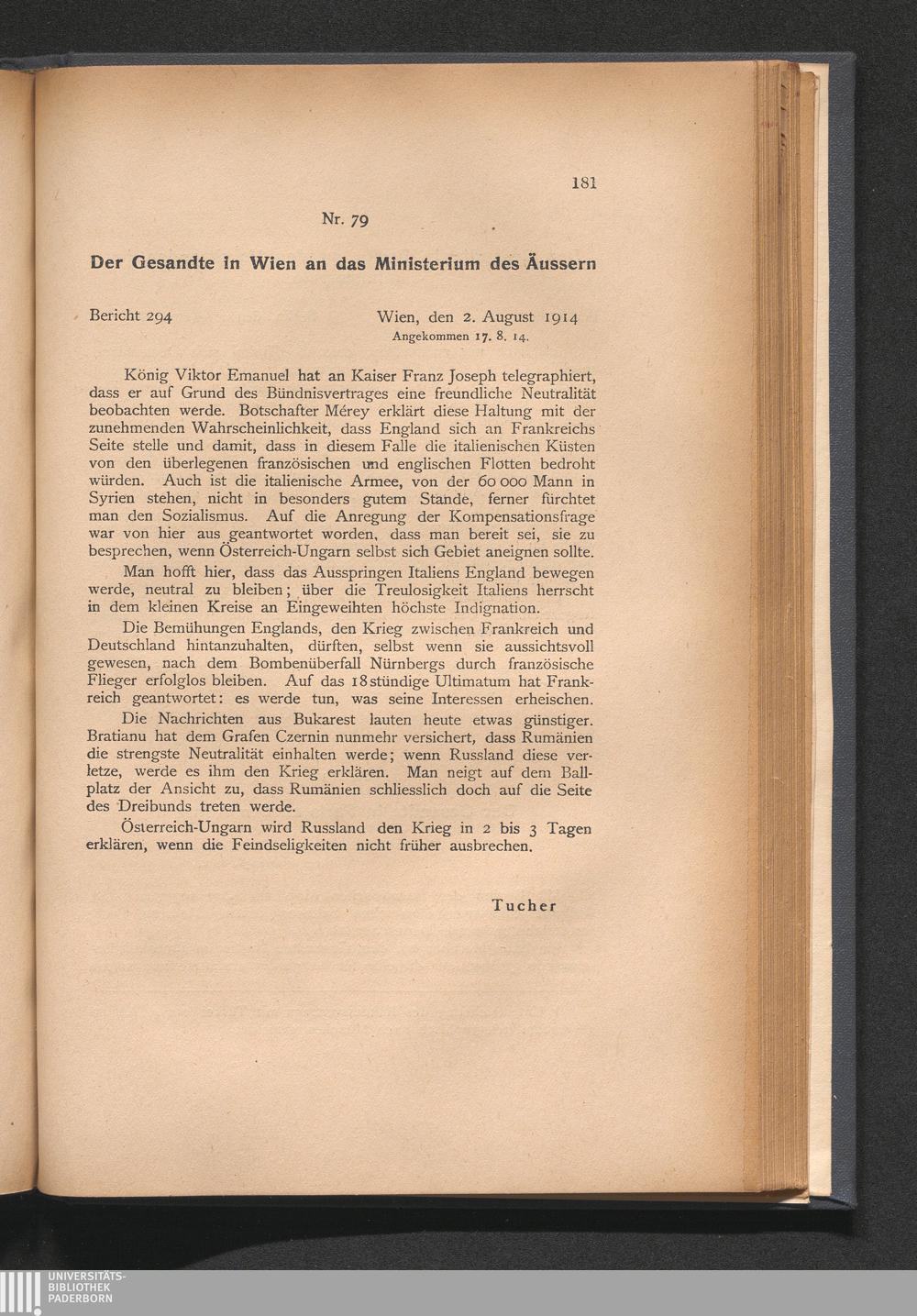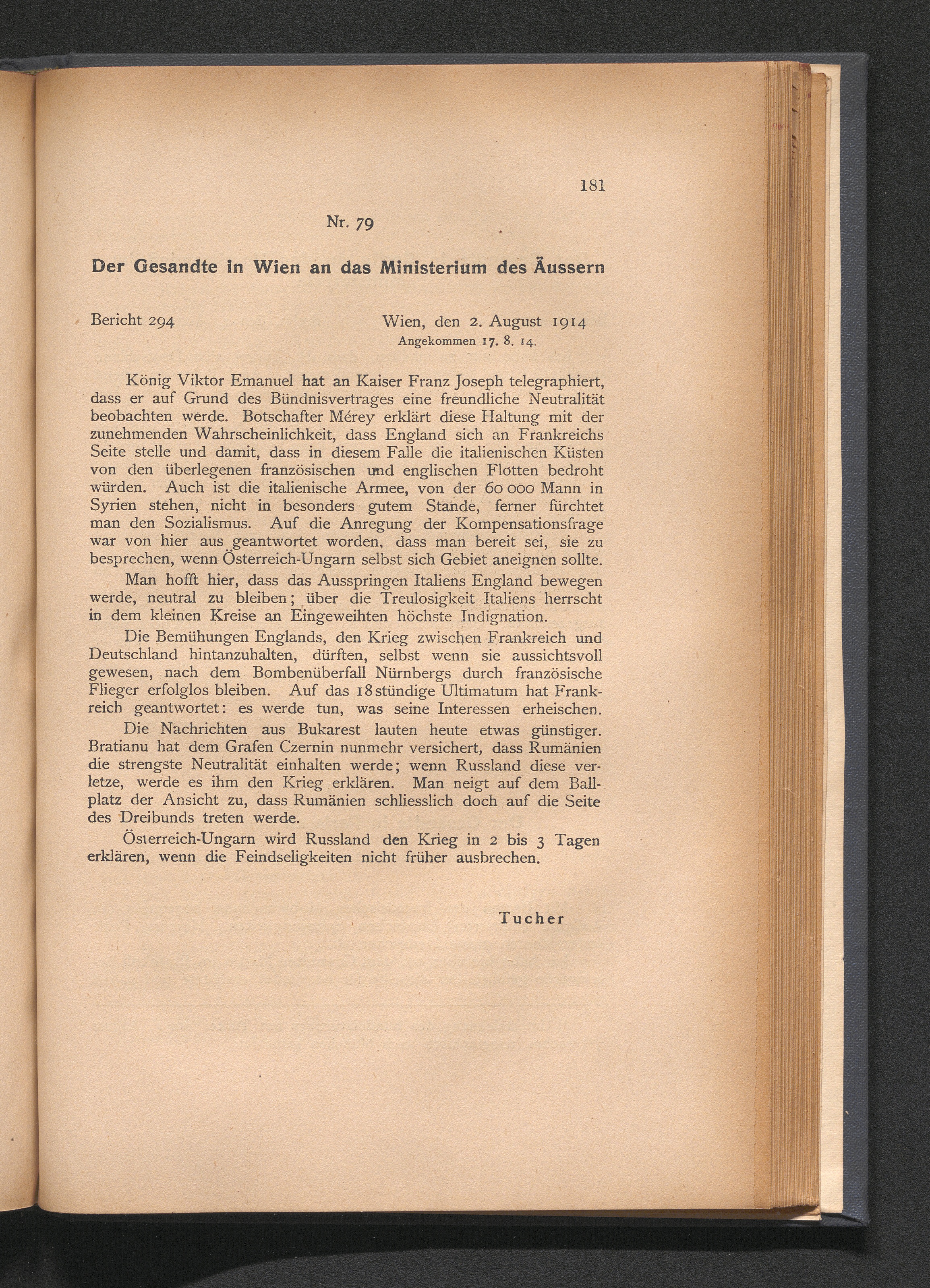79. Der Gesandte in Wien an das Ministerium des Äussern